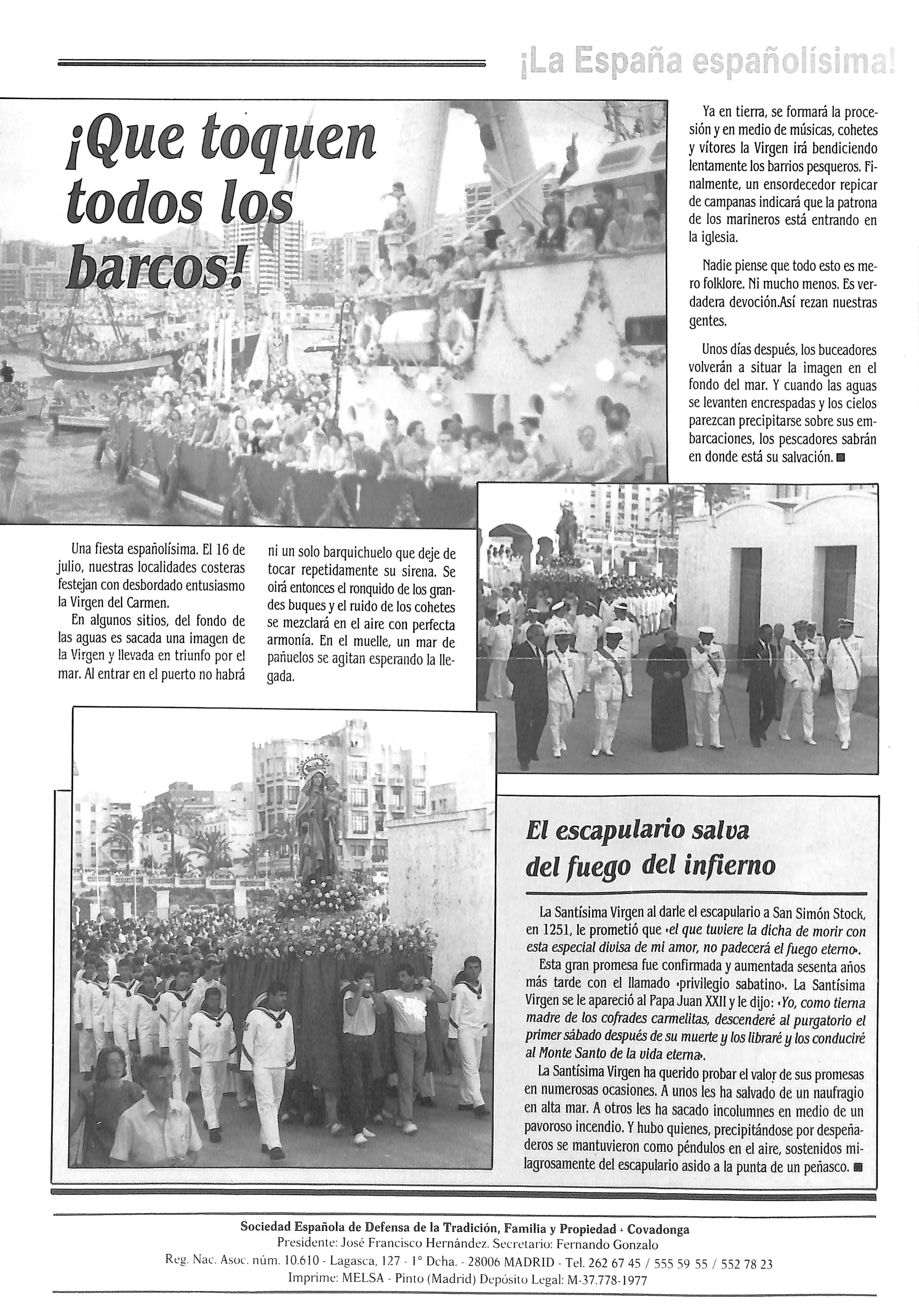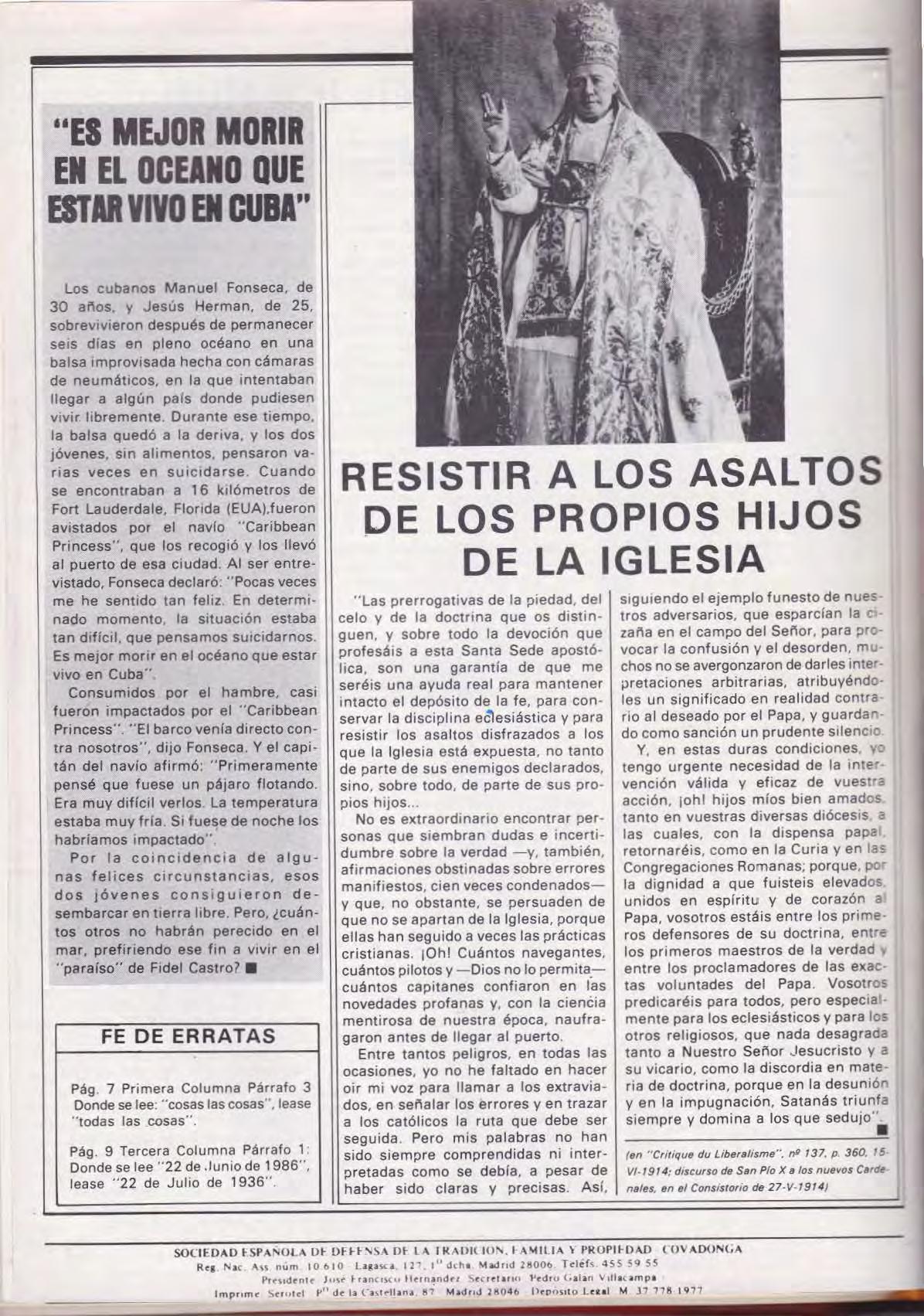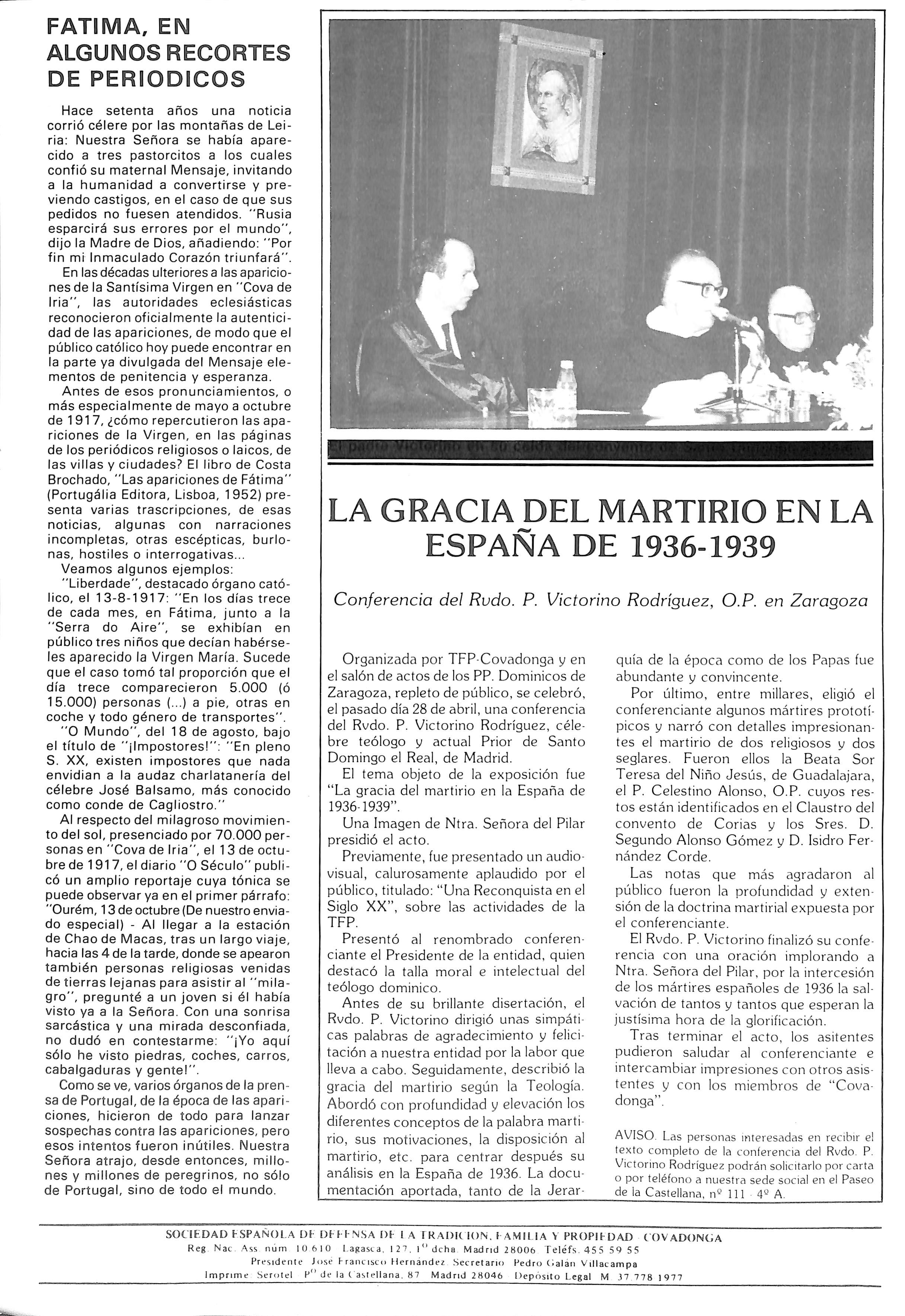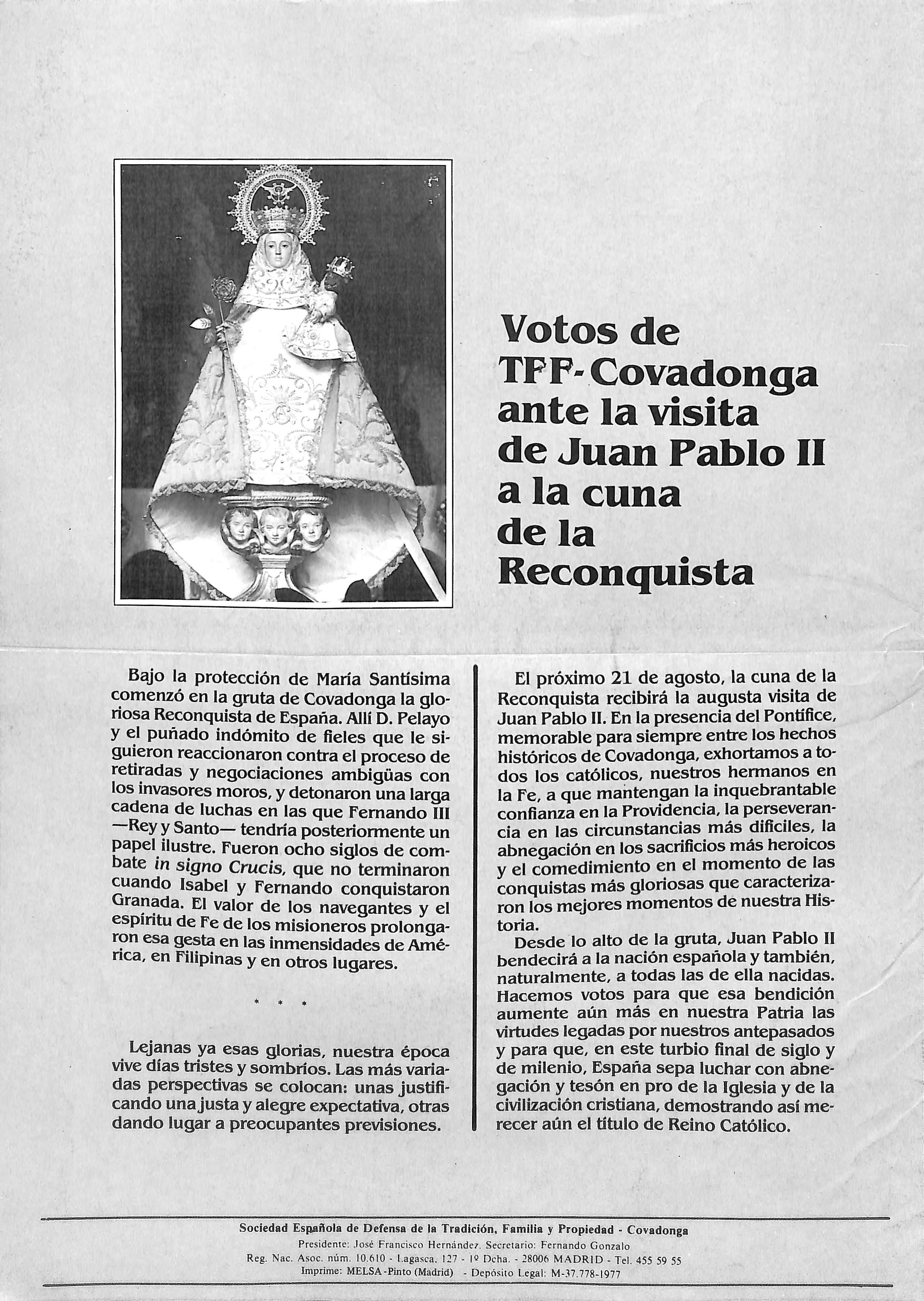 Sociedad Española de Defensa de la Tradición, Familia y Propiedad - Covadonga Presidente: José Francisco Hernández. Secretario: Fernando Gonzalo Reg. Nac. Asoc. niim. 10.610 - Lagasca. 127- 1° Dcha. - 28006 MADRID - Tel. 262 67 45 / 555 59 55 / 552 78 23 Imprime: MELSA - Pinto (Madiid) Depósito Legal: M-37.778-1977