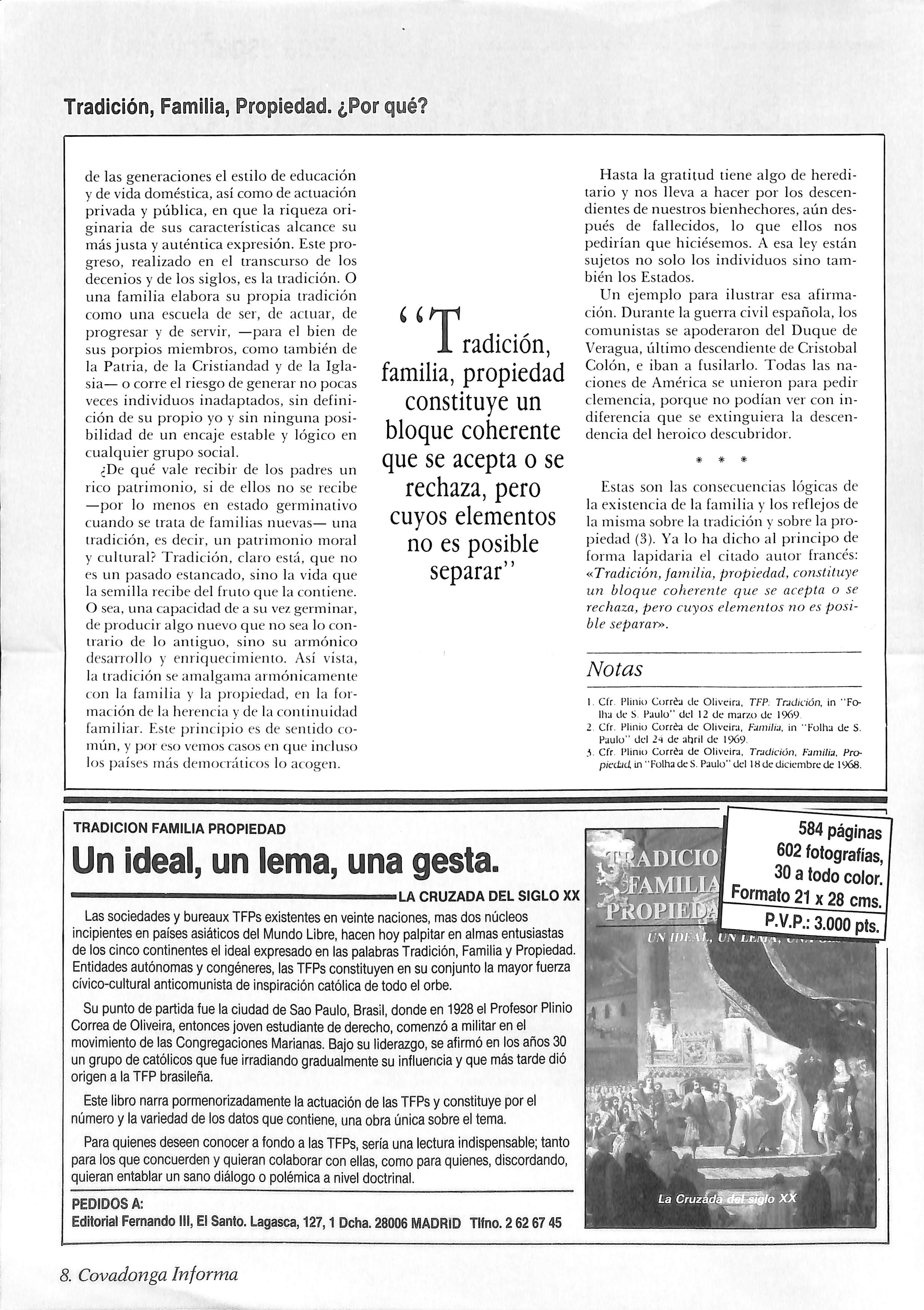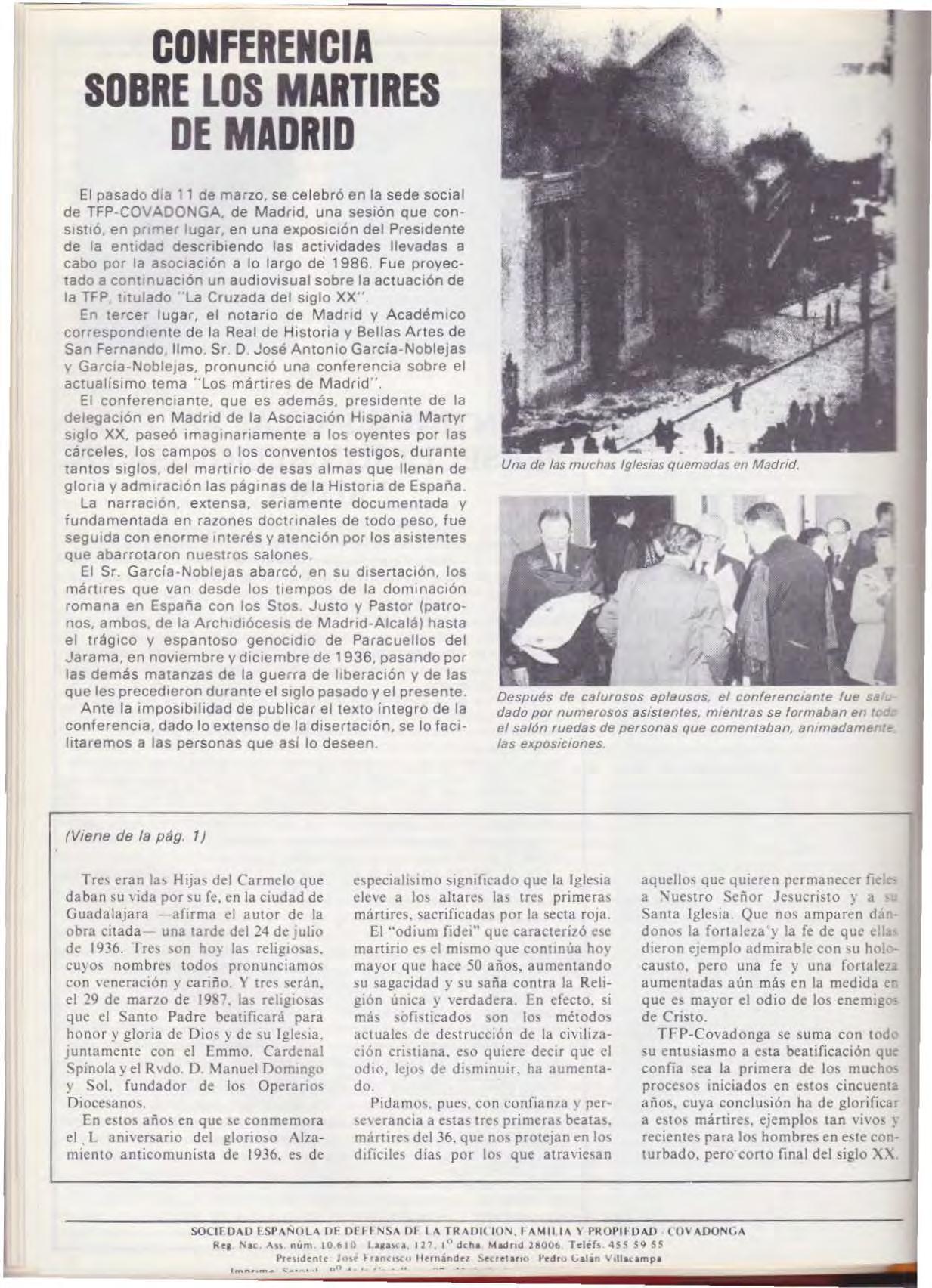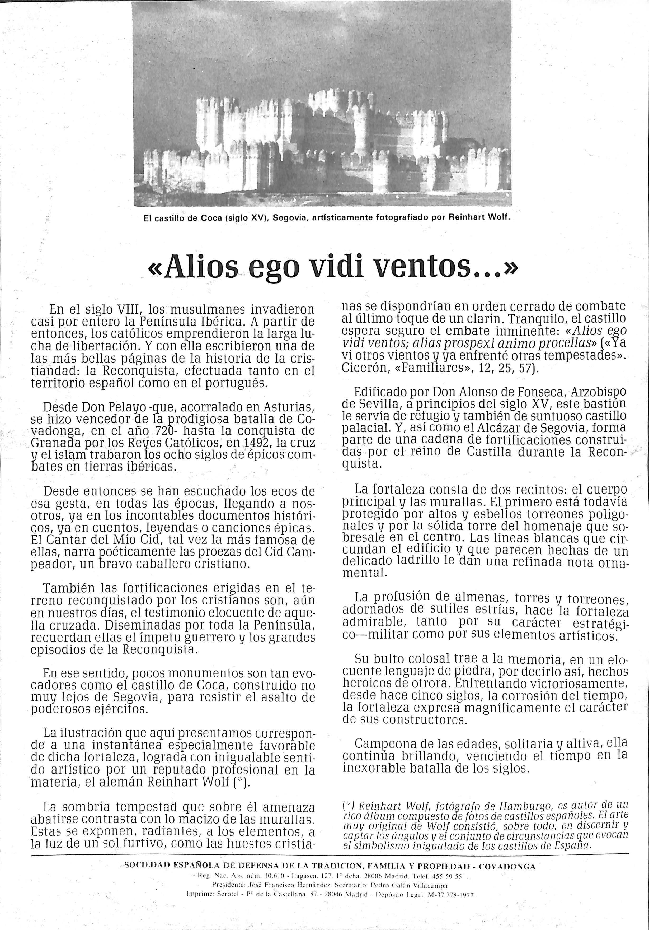 Sociedad Española de Defensa de la Tradición, Familia y Propiedad - Covadonga Presidente: José Francisco Hernández. Secretario: Fernando Gonzalo Reg. Nac. Asoc. niim. 10.610 - Lagasca. 127- 1° Dcha. - 28006 MADRID - Tel. 262 67 45 / 555 59 55 / 552 78 23 Imprime: MELSA - Pinto (Madiid) Depósito Legal: M-37.778-1977