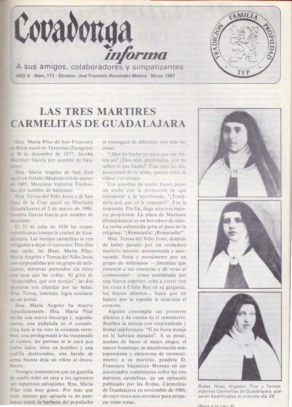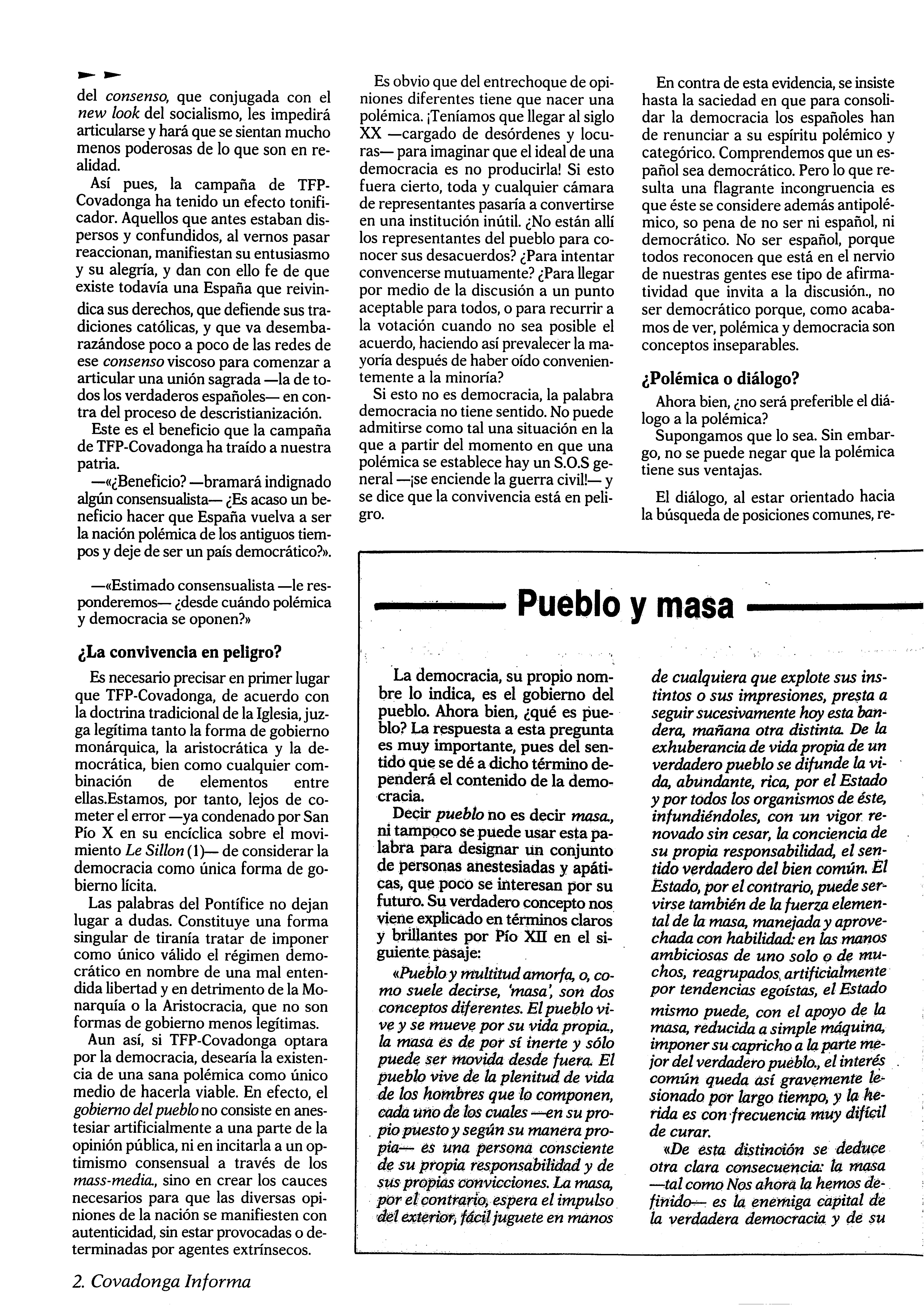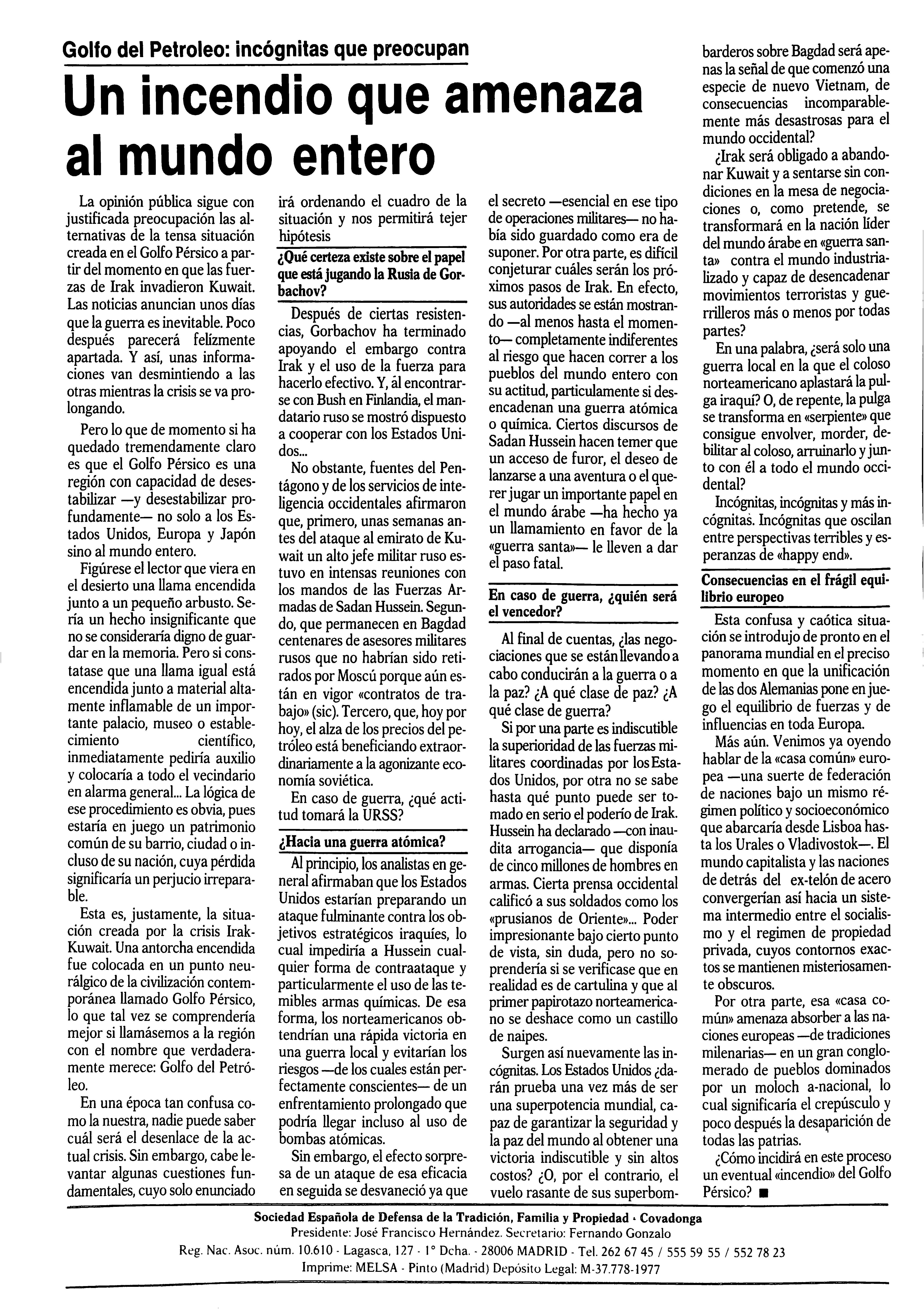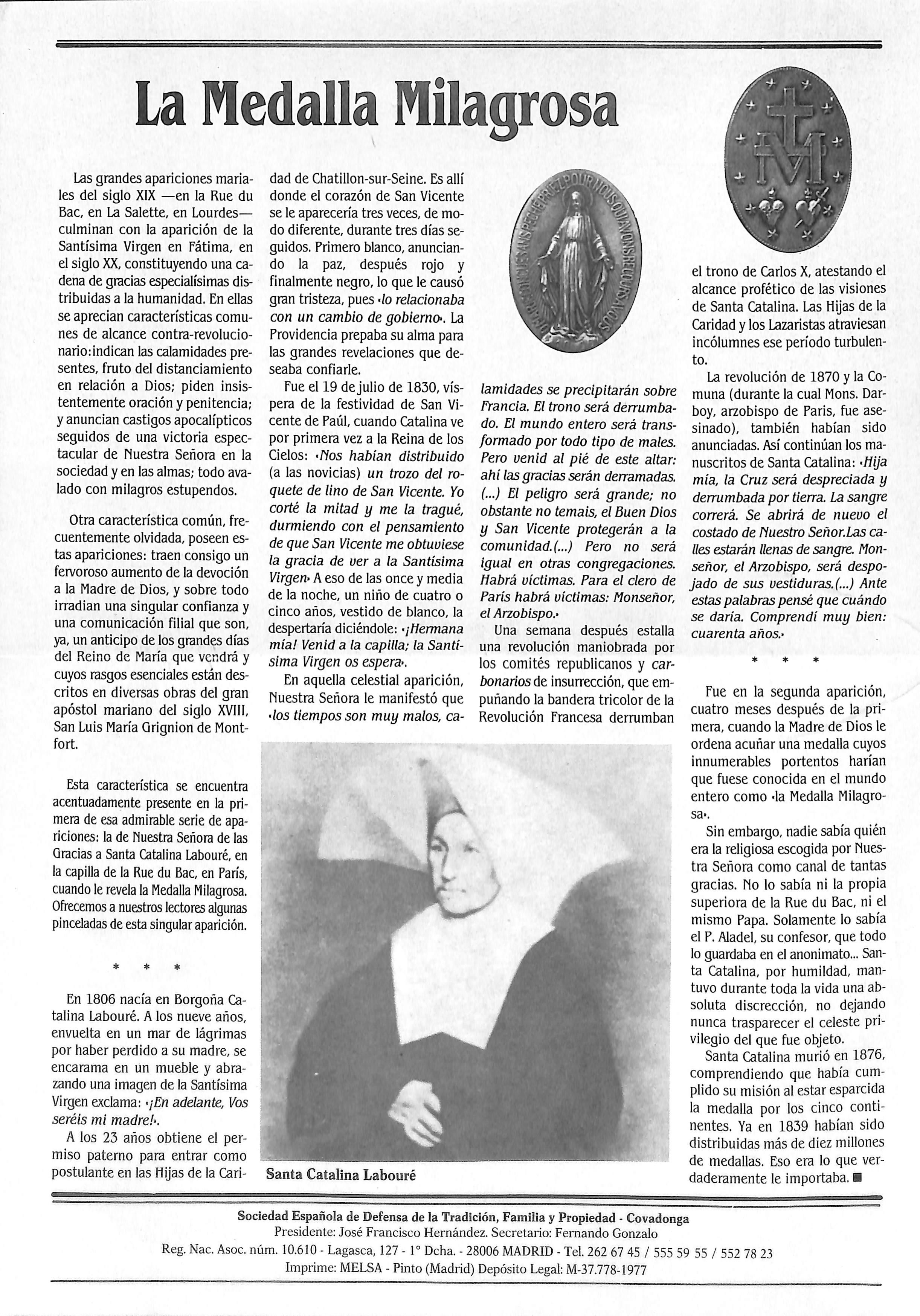 Sociedad Española de Defensa de la Tradición, Familia y Propiedad - Covadonga Presidente: José Francisco Hernández. Secretario: Fernando Gonzalo Reg. Nac. Asoc. niim. 10.610 - Lagasca. 127- 1° Dcha. - 28006 MADRID - Tel. 262 67 45 / 555 59 55 / 552 78 23 Imprime: MELSA - Pinto (Madiid) Depósito Legal: M-37.778-1977