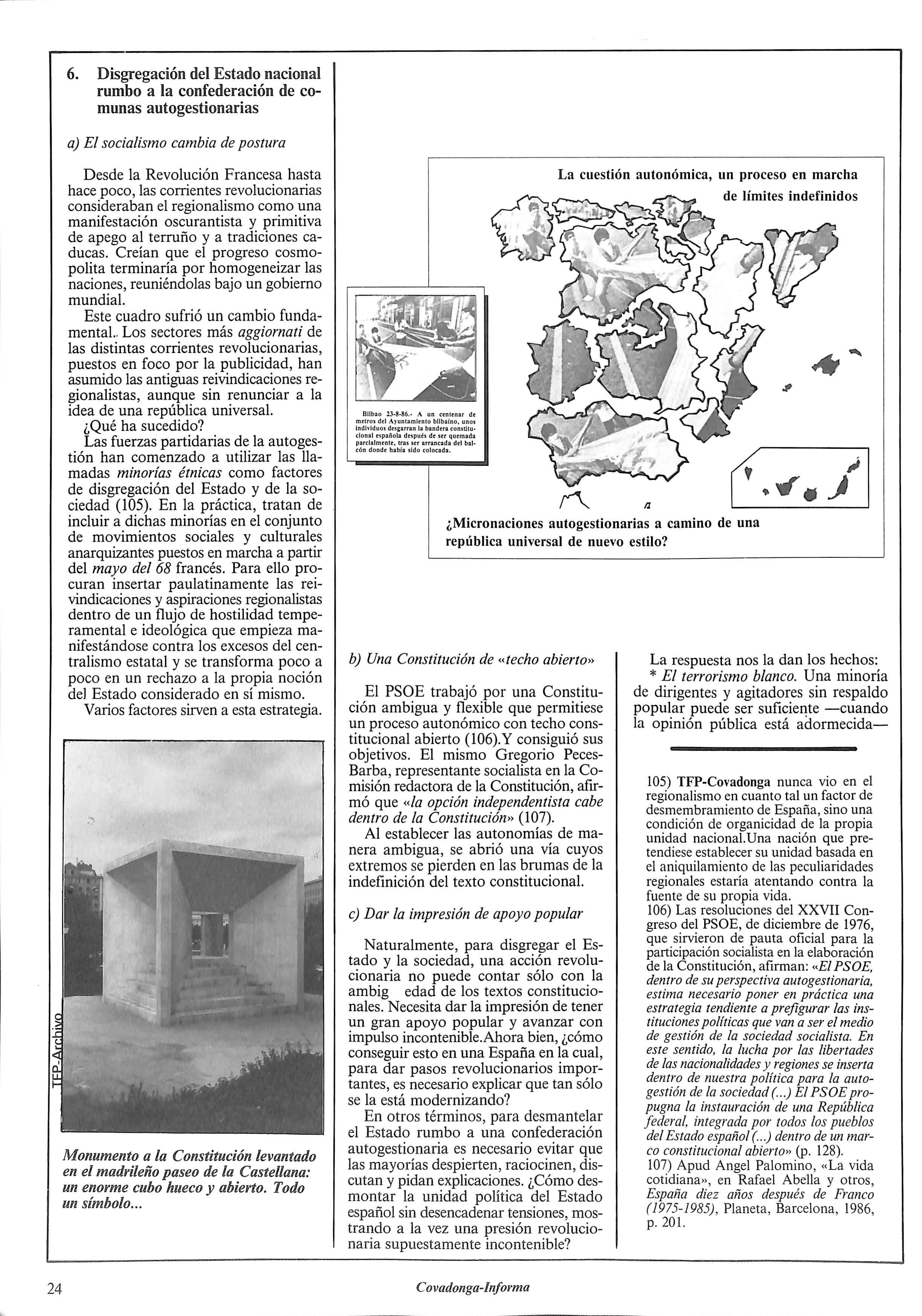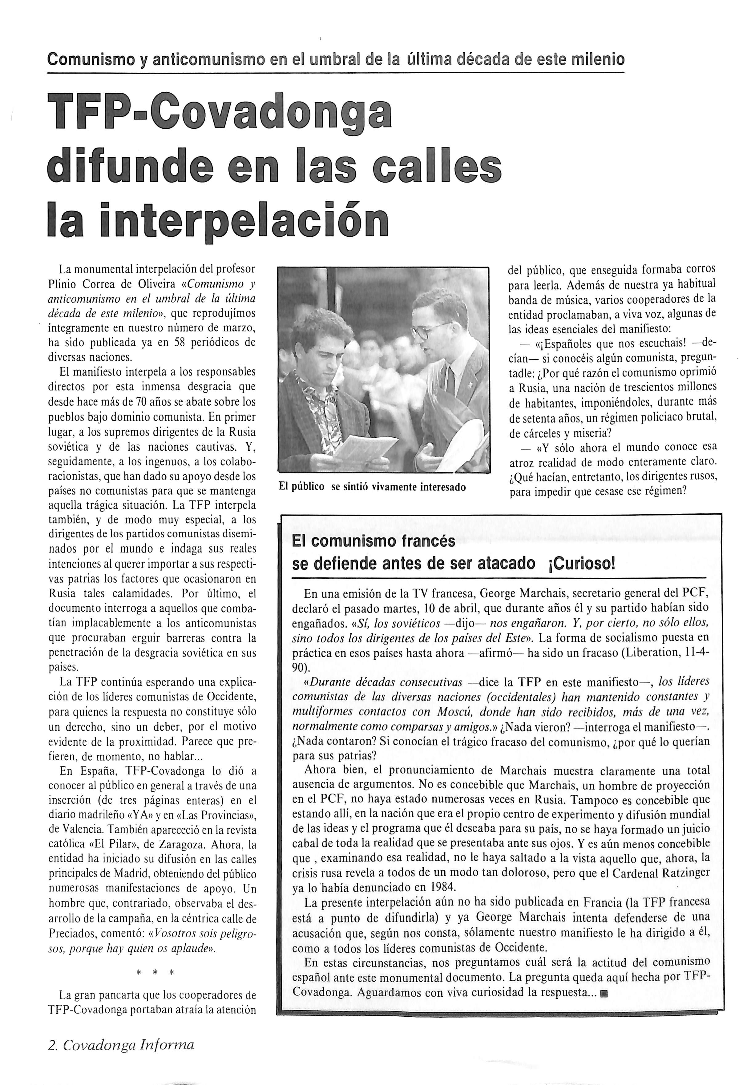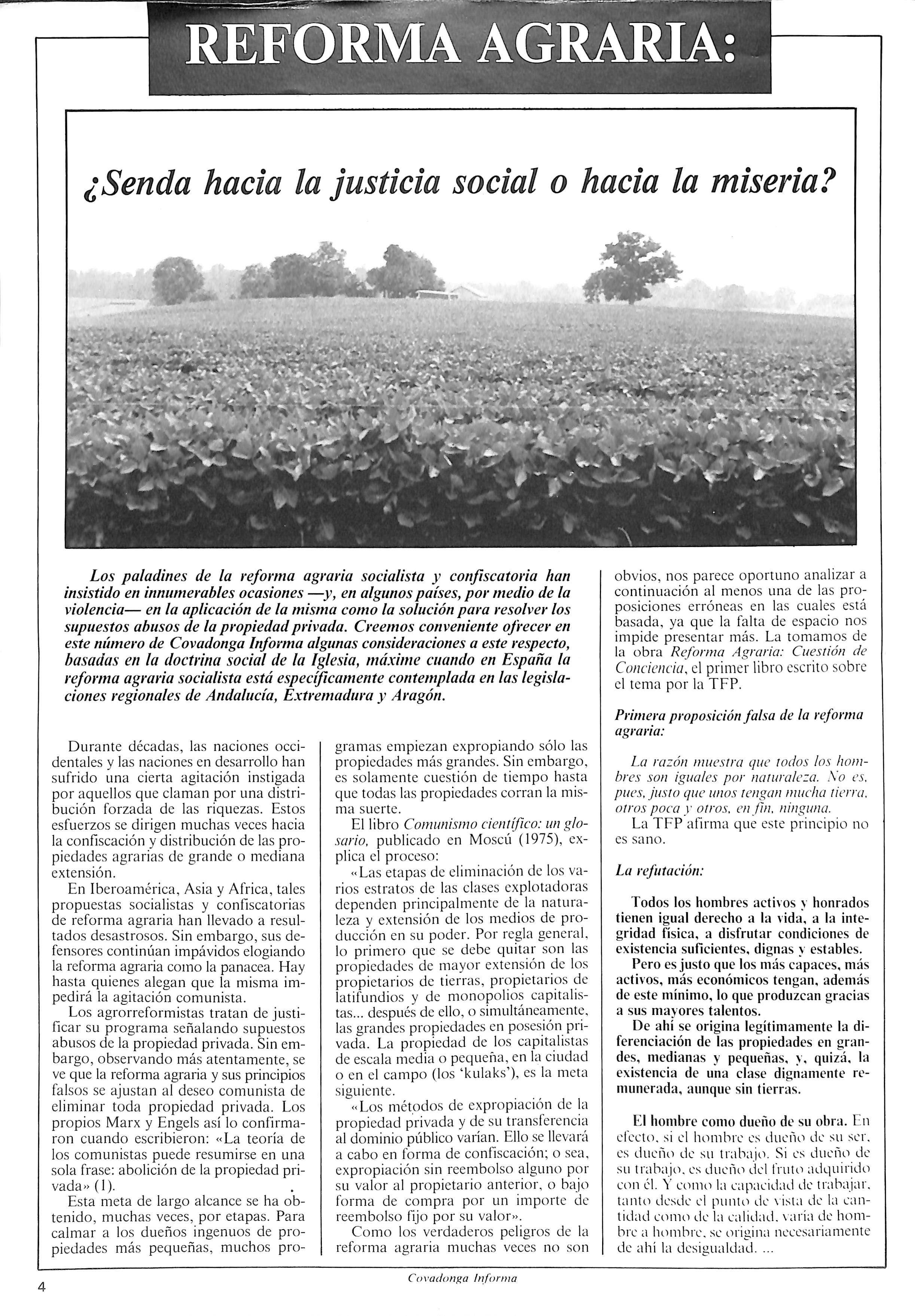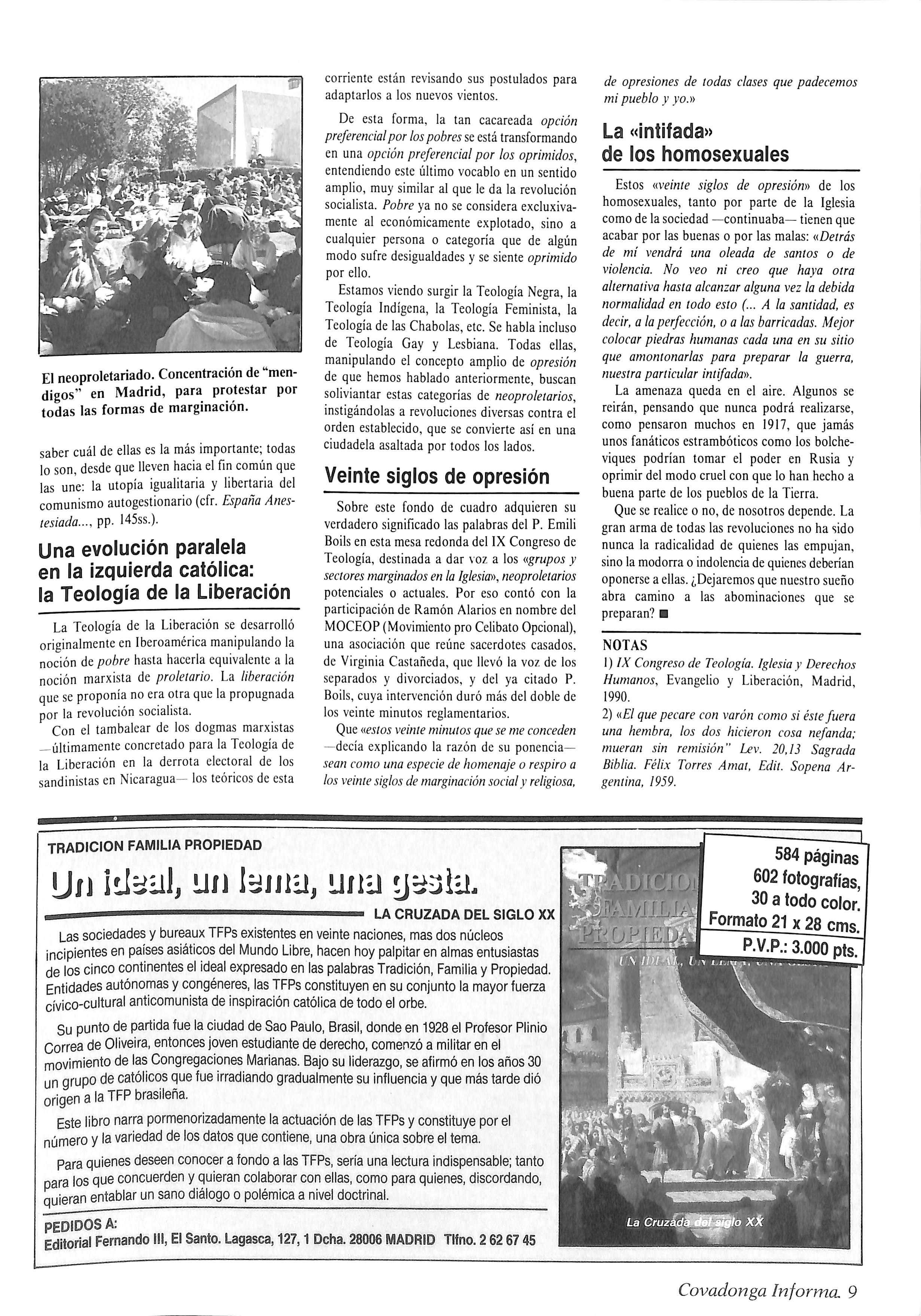 2TFP-Covadonga actúa,en base a las enseñanzas tradicionales del Supremo Magisterio de la Iglesia, para preservar a España contra la expansión —llena de tretas, pero no por eso menos rápida—de los errores del socialismo y del comunismo. Nuestra entidad violaría sus deberes más elemen tales si omitiese su palabra de esclareci miento en un momento tan trascenden tal. Para ello hace uso de la libertad de expresión que le concede el artículo 20.1. de la Constitución.