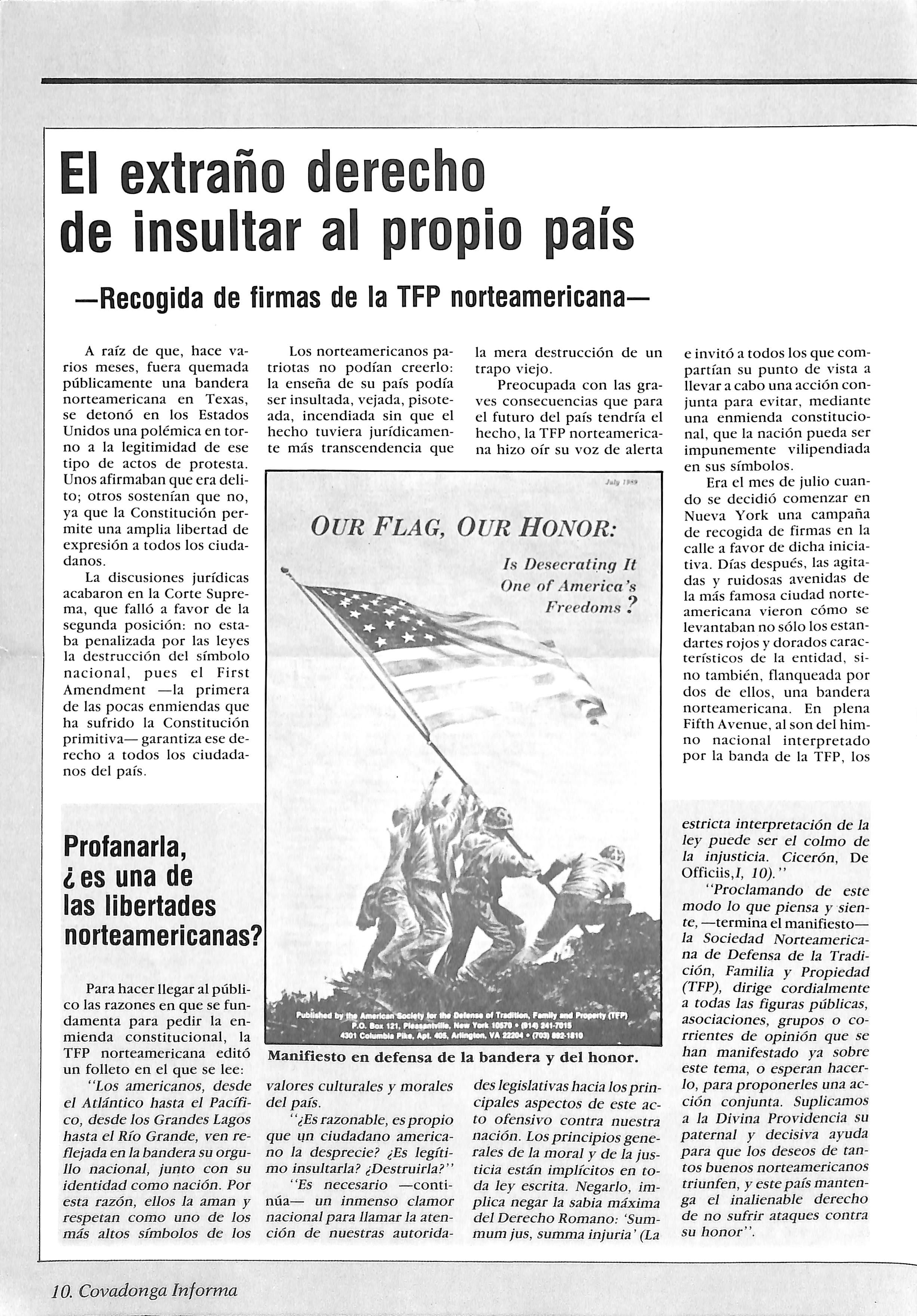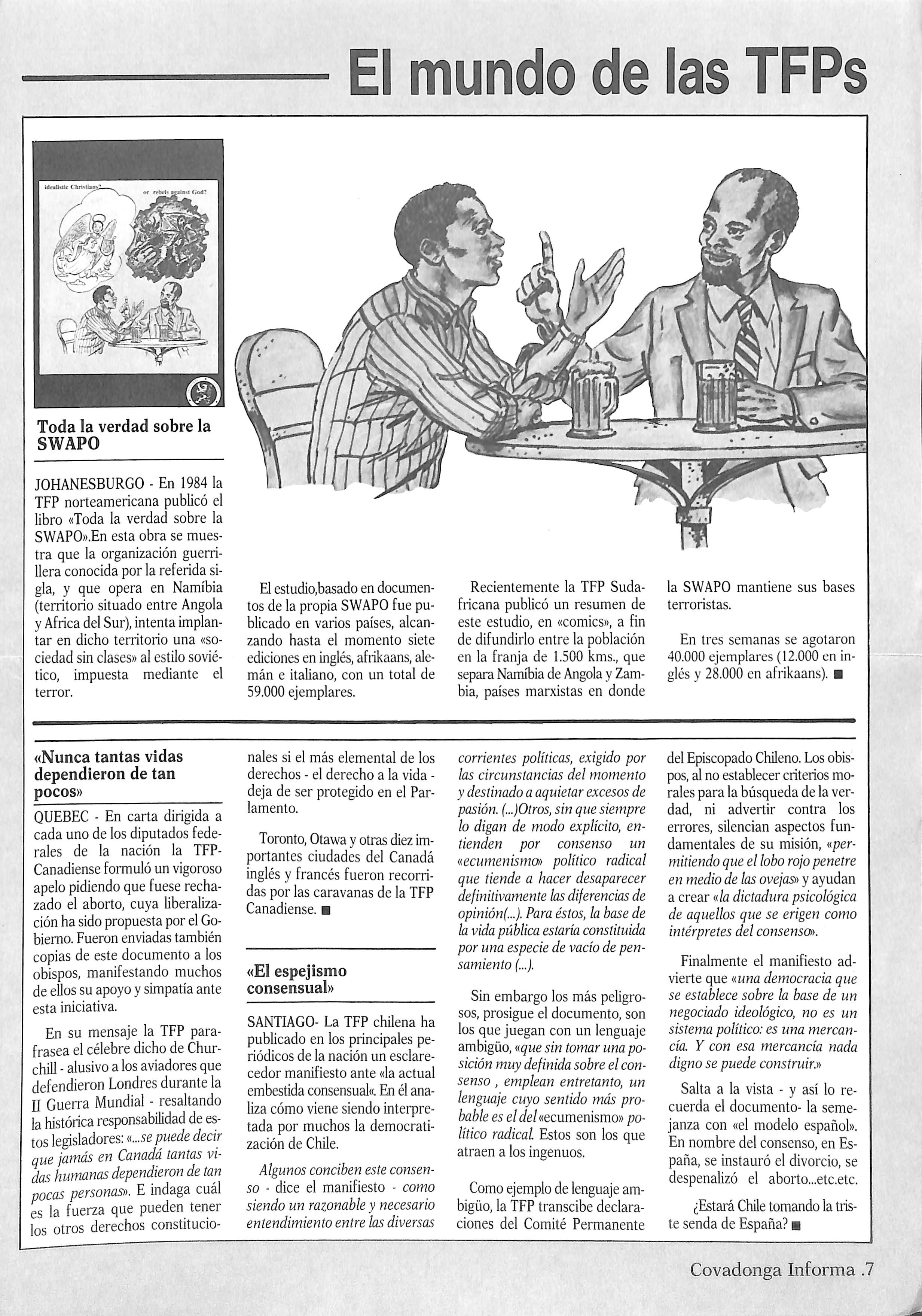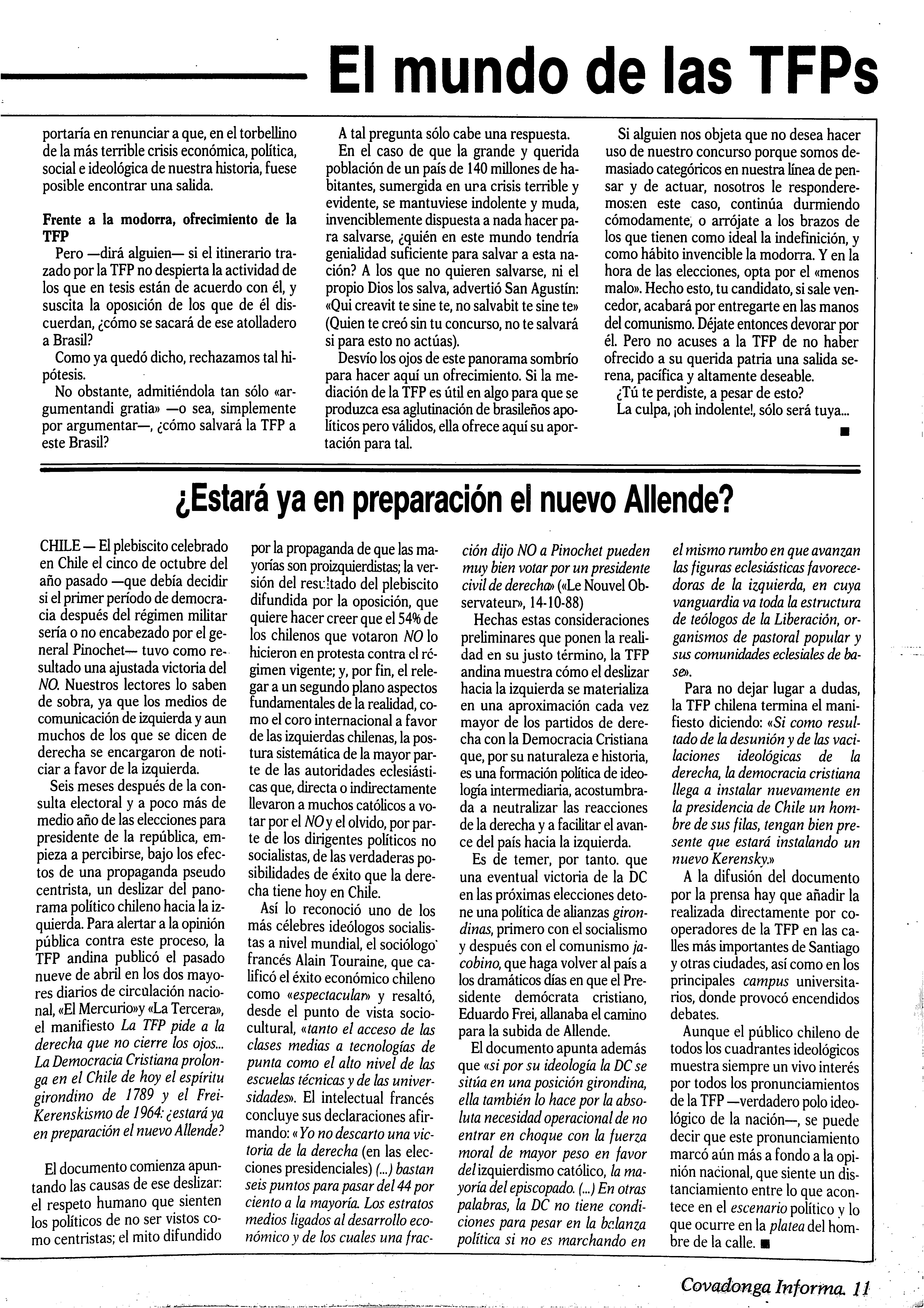Ahora, la Sociedad Chilena de Defensa de la Tradición, Fami lia y Propiedad publicó en el periódico "Ultimas Noticias" de dicha capital, un comunicado del cual extraemos los siguientes trechos: