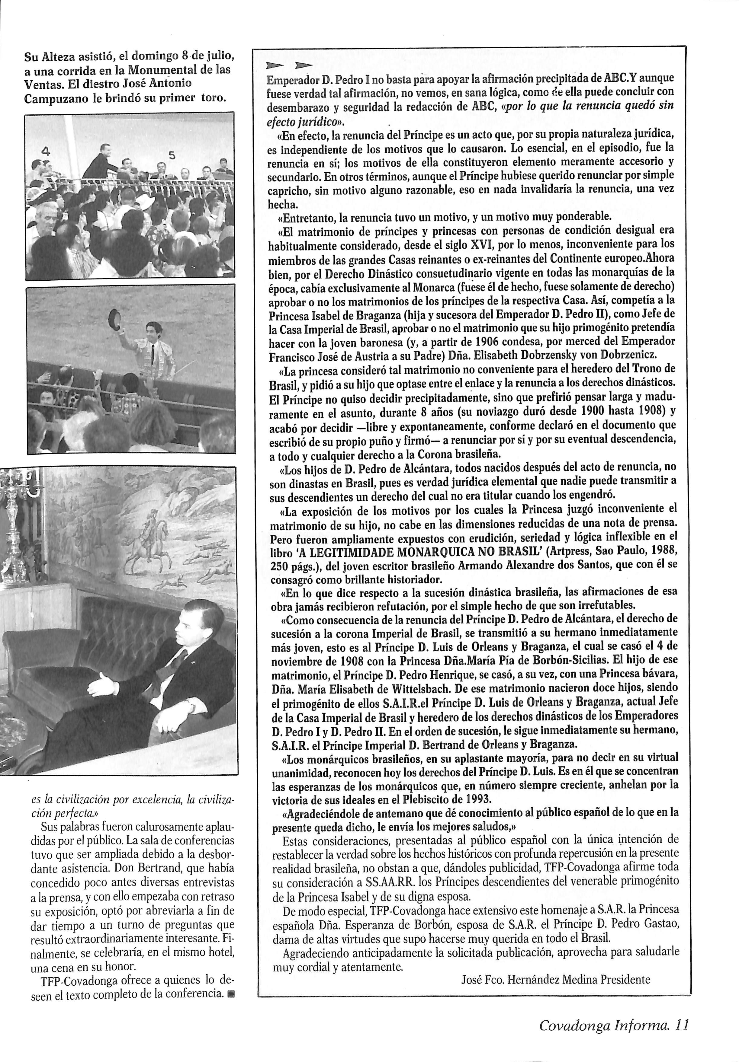 Manifiesto, pues, mi esperanza de que V. Excia. aparte del escenario nacional ese factor de discordia y confusión. E impedirá que al Brasil —descubierto por naves en cuyas velas figuraba la Cruz de Cristo, llamado Tierra de Santa Cruz, e instituido como Reino de Nuestra Señora Aparecida por célebre decreto de la Santa Sede— le sea lanzada esa deshonra".