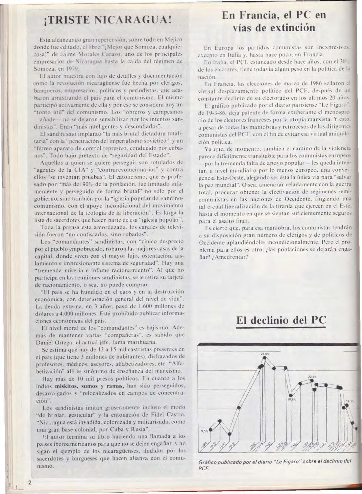 — En resumen,¿no es infantil atribuir tanta fuerza probatoria a las sonrisas del camarada Gorbachov y a la elegancia de su esposa? Mucho antes que Gorbachov, Kruchev también intentó hechizar y desmovilizar a Occidente por medio de sus sonrisas, sus farsas groseras, sus bromas de histrión. En realidad, nada ha cambiado en la política de expan(Continúa en pág. 8)