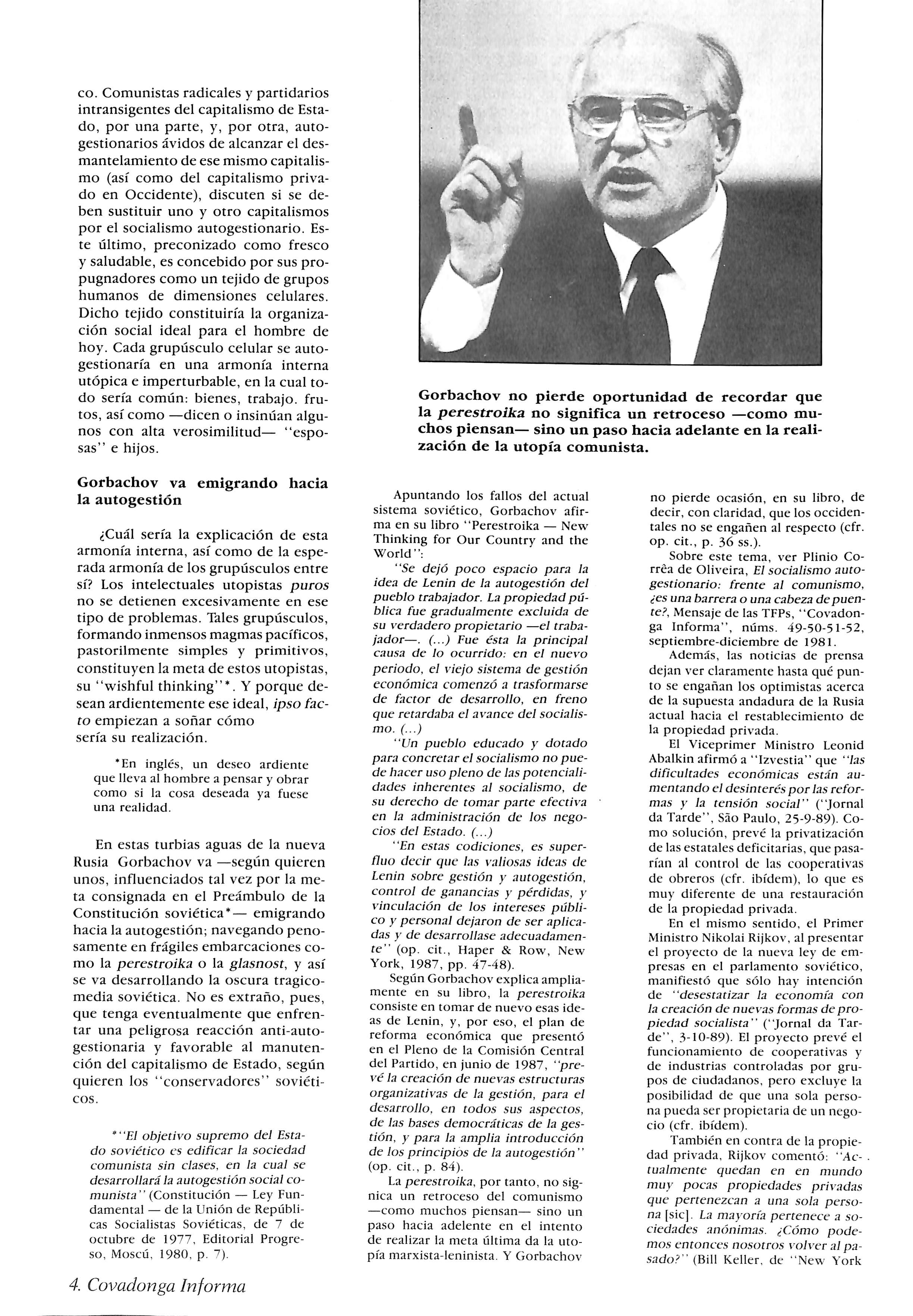 Incluso ahora, se intenta pre sentar toda la liberalización de estos pueblos como efecto de la acción de un solo hombre, Gorbachov,apesar de que varías ve ces haya anunciado oficialmente su intención de mantener el co munismo; sin hablar de que se trata de un h'der bastante des prestigiado en la propia Rusia.