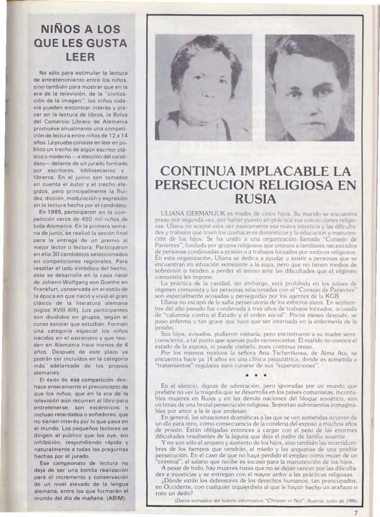 d)Es verdad que, según algunos indi cios(como, por ejemplo, la simpatía per sonal la flexibilidad del camarada Gorbachov, y la elegancia de su esposa, la camarada Raisa, a quienes la pren sa mundial no pierde una sola ocasión de elogiar), la Rusia de hoy ya no parece ser la misma Rusia sanguinaria, policialesca y agresiva de los tiempos de Lenin y de Stalin... Pero, ¿se pu,de admi tir sin más, en base a esos discutibles