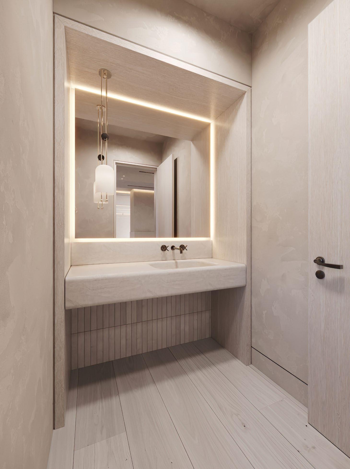 Venetian plaster walls and recessed LED lighting details