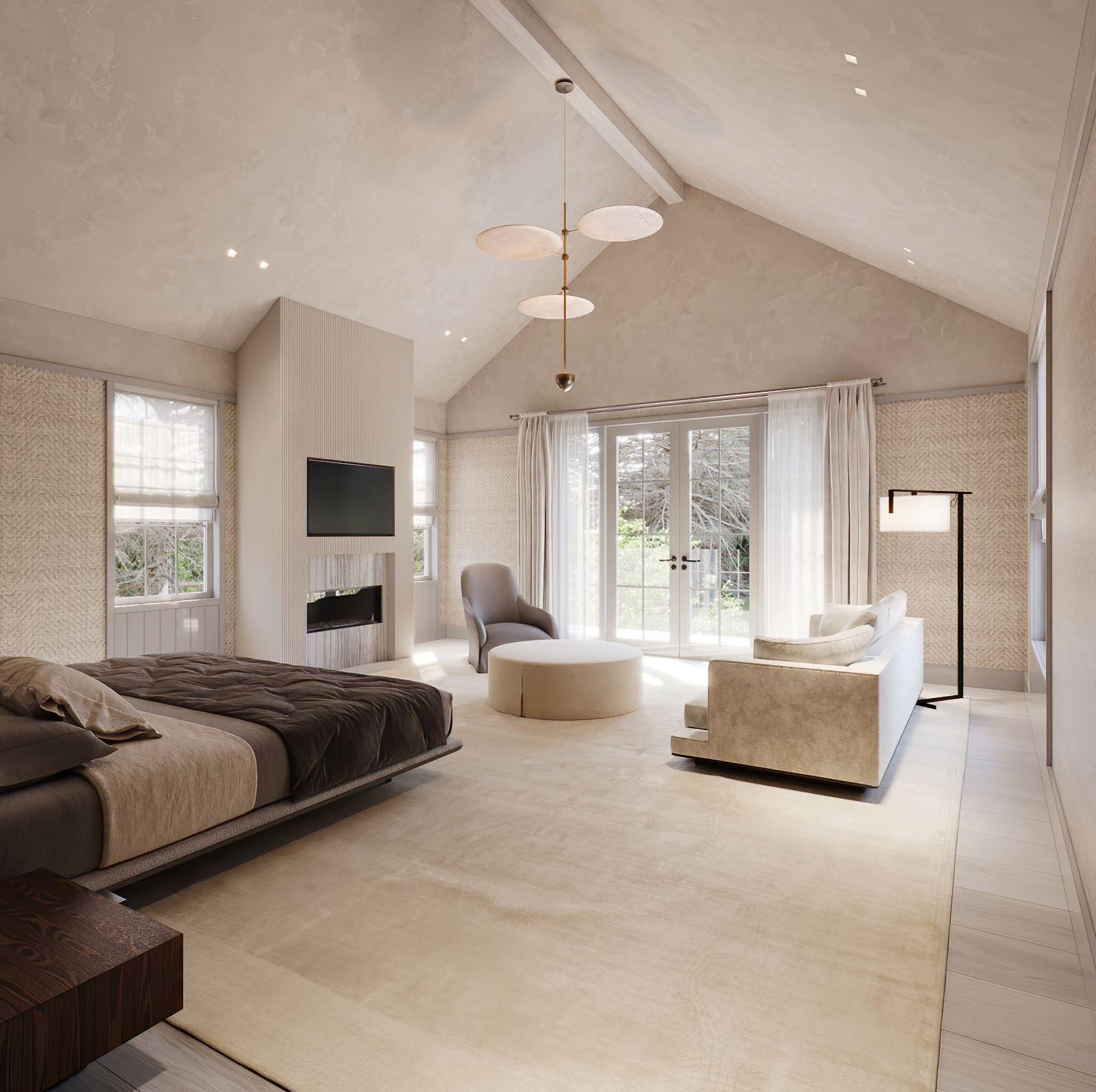 The primary suite is a true oasis -- complete with a gas fireplace, dual walk-in closets, and a spainspired bath featuring a soaking tub, floating vanities, radiant-heated floors, and expansive vistas of open sky and farmland.