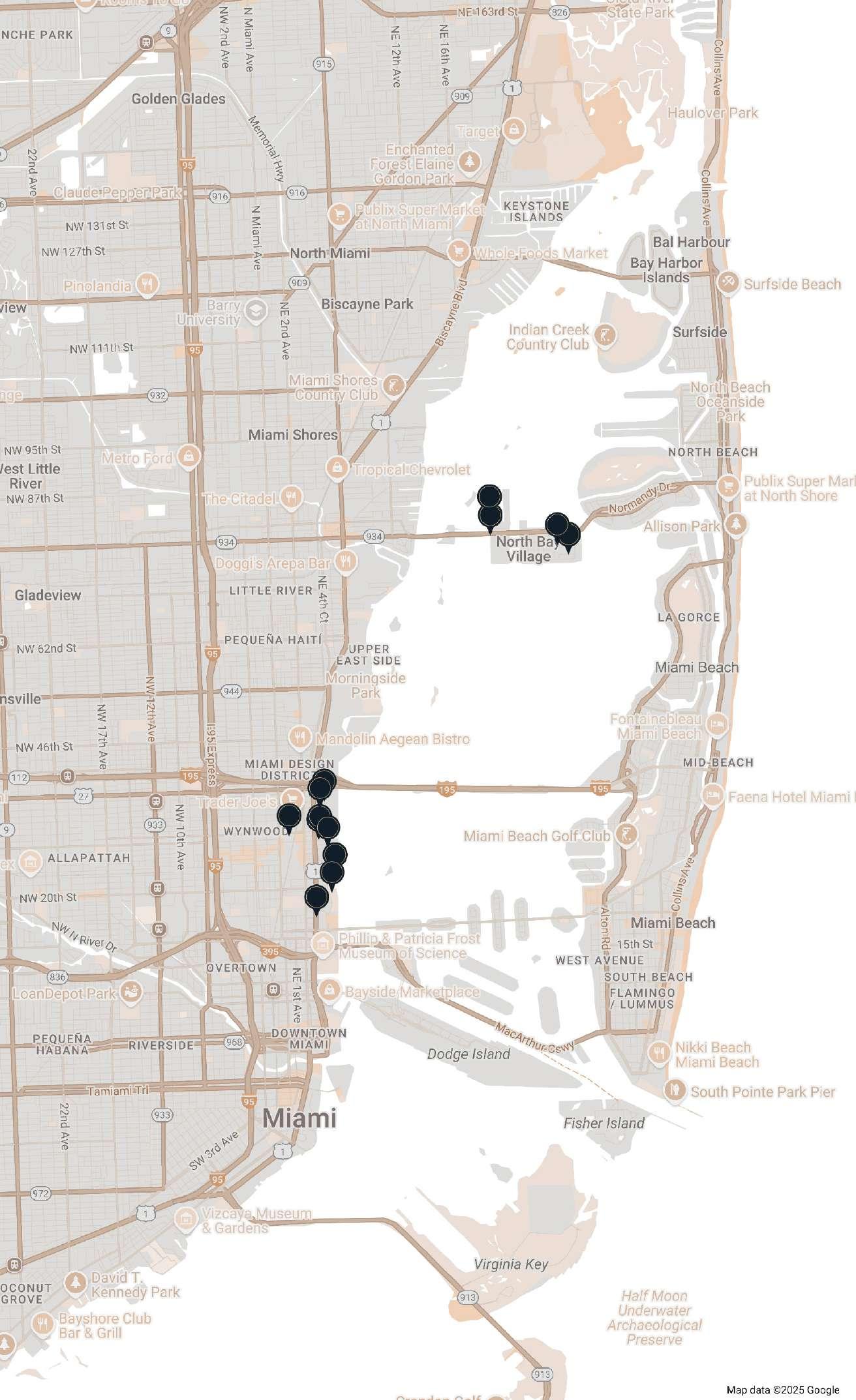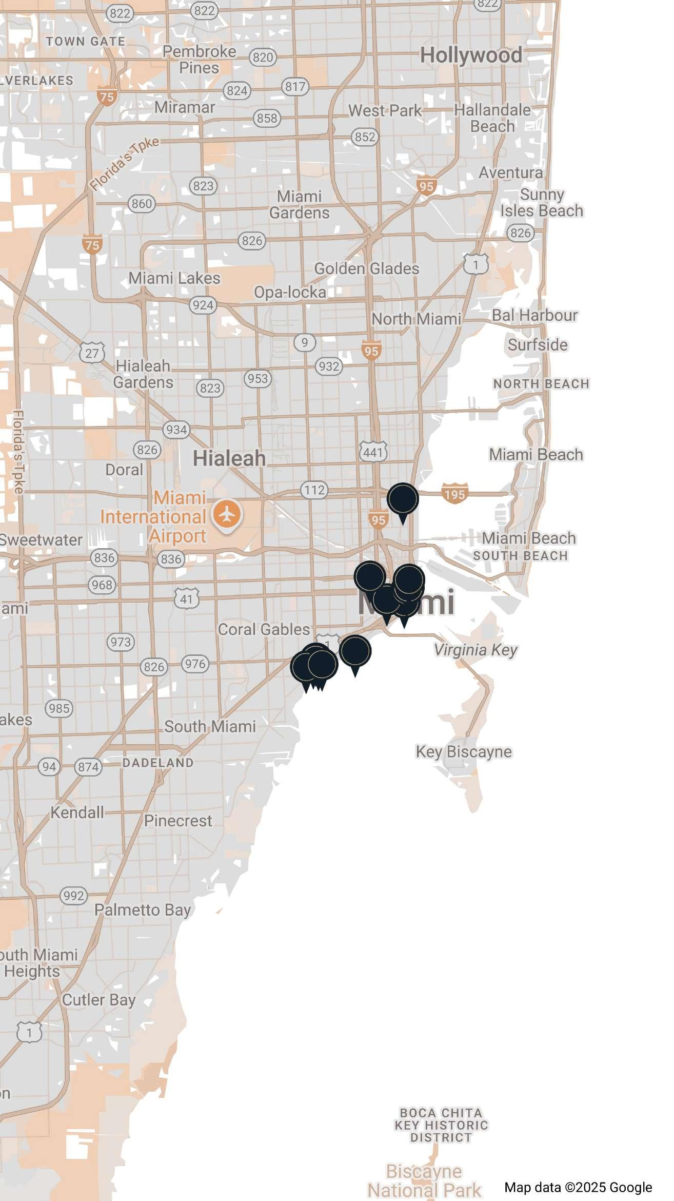 ~13 miles (21 km) from PAMM - about a 15/25 min drive, depending on traffic.