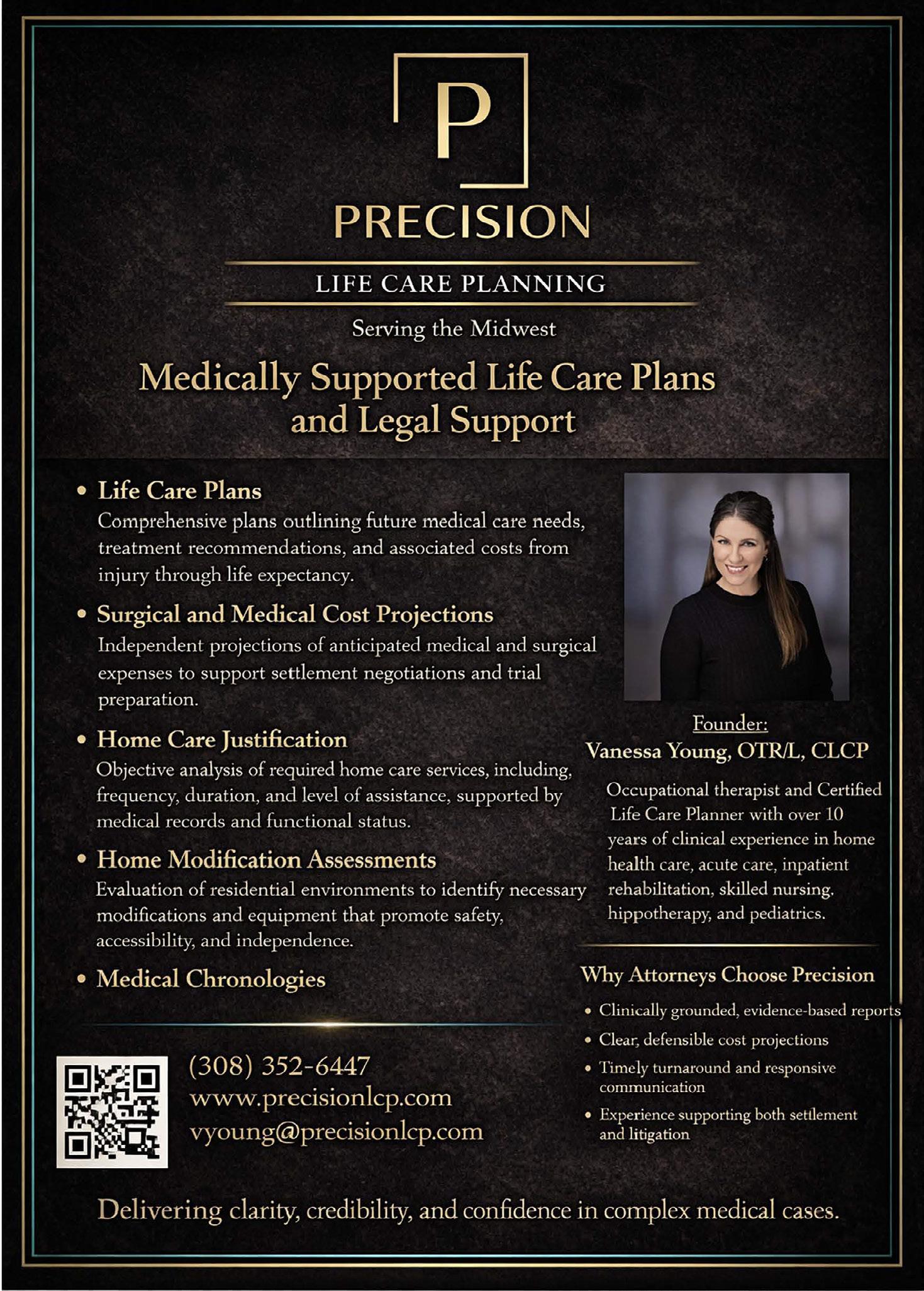 At the same time, we cannot ignore the broader moment we are in. Across the country—and here in Nebraska for the last two legislative session—we are seeing increasing efforts to limit access to the courts, restrict the role of juries, and weaken the civil justice system. These changes do not happen in a vacuum. They directly impact our clients, our communities, and the work we do every day. That is precisely why the strength of this organization matters. A strong, connected, and engaged membership is essential—not only to support one another, but to ensure that we continue to have skilled, prepared advocates who are ready to stand up for their clients and defend the role of the jury system.