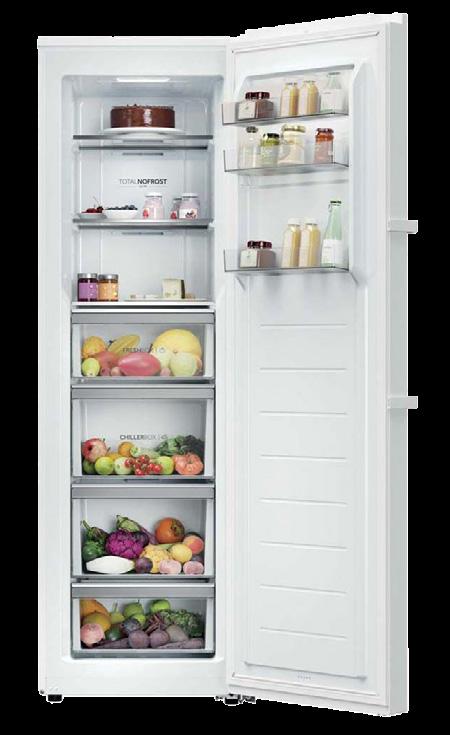 Questa tecnologia elimina la formazione di brina sui contenuti e lo sbrinamento del vano congelatore.
