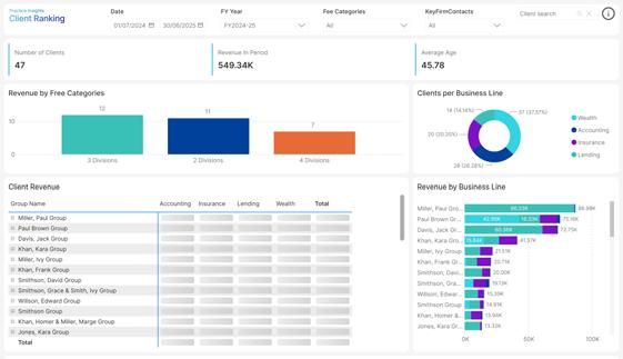 Among AdviceTech Stars, two‑thirds (67%) track core Key Performance Indicators (KPIs, e.g., revenue, time spent), analyse staff resourcing, and monitor staff and client satisfaction. Two thirds of Stars are relying on data to generate broad business insights (64%), to conduct business scenario planning (e.g. revenue or staffing) (56%), and many use data to highlight cross‑sell opportunities.