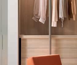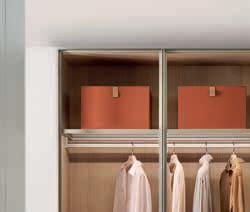 L’armadio è sempre più protagonista della camera da letto. Può essere anche sospeso o vestibile: le ante classiche sono sostituite da un’unica anta in tessuto lunga quanto tutta la struttura che scorre su binari invisibili.