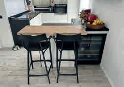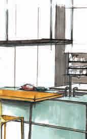 mente al bucato, separato dalla cucina vera e propria mediante tavolati in cartongesso che fungono anche da elementi contenitivi della dispensa. L’asciugatrice e l’asse da stiro, invece, sono completamente integrati e “scompaiono” dentro le basi della parete attrezzata.