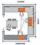 Il “Work Triangle” è un modello che indica la corretta disposizione della zona di conservazione, del lavaggio e della cottura. Se collegate idealmeente, queste tre aree devono formare un triangolo con un perimetro compreso tra i 4 e i 7,9 metri.