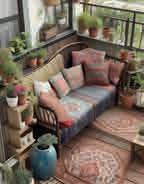 Anche i balconi di dimensioni ridotte, con le giuste scelte di arredo, possono diventare dei piccoli gioielli. Vasi di design e soluzioni salvaspazio creano ambienti accoglienti e rilassanti rendendo ogni angolo un’opportunità per la crescita e la bellezza di piante e fiori. Le fioriere rettangolari in plastica riciclata sono perfette per coltivare ortaggi ed erbe aromatiche, i vasi di terracotta esaltano il portamento di agrumi e olivi, le fioriere in corten si addicono al bambù, il grigio esalta invece le piante scultoree come il cactus. La pavimentazione, poi, svolge un ruolo decisivo nel definire lo spazio. Un minuscolo balcone può essere trasformato rivestendolo con tavole di pino non trattato oppure, più semplicemente, ricoperto con un tappeto. In colori neutri o con fantasie più elaborate, i tessili rendono sempre lo spazio più bello e confortevole.