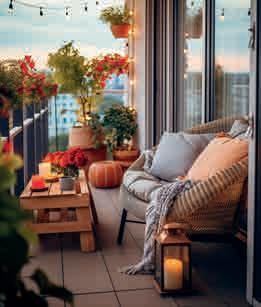 Per modeste profondità sono adatte anche le lampadedatavololed senzafilodascegliereinabbinamento all’arredo. Se il terrazzo ha invece metratura più importante, la prima opzione è la luce indiretta, ovvero lampade che convogliano la luce versoilsoffittoolaparete.Seprivodicopertura, la scelta giusta ècombinare faretti, luci da terra e da parete.