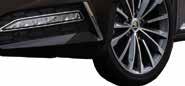 Solidità e sicurezza Offerta con tre tipologie di motorizzazione (diesel, benzina e plug-in) e in due varianti (berlina e station-wagon), la vettura si presenta solida e senza fronzoli, forte di un andamento regolare, con un frontale caratterizzato dalla tipica calandra Skoda. L’imponenza del cofano anteriore è attenuata dalle nervature che lo attraversano; più movimentata la fiancata, che nella variante station wagon offre maggiore spaziosità senza sacrificare l’esteti-