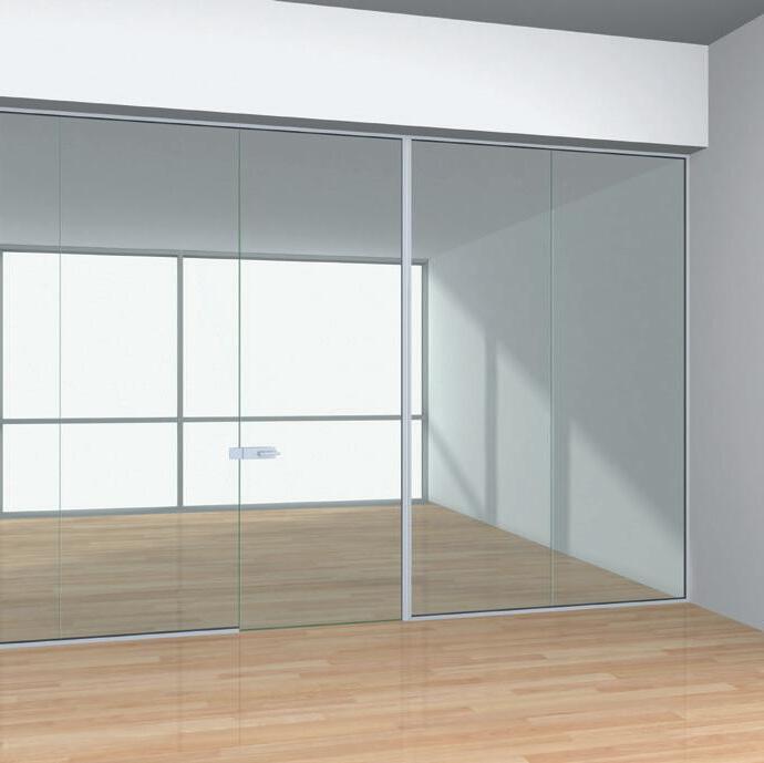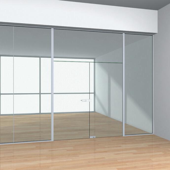 Maximale Transparenz für Ihren Raum. Die Ganzglaswand bringt Offenheit und Freiheit ins Team. Sie nimmt sich zurück und lässt den Raum für sich wirken. Durch minimierte Profile an Decke sowie Boden und ganz ohne vertikale Profile entsteht ein fließender Übergang zwischen verschiedenen Räumen. Die großflächigen Glasscheiben werden durch eingepresste Dichtungen sicher gehalten. Eine transparente Wirkung macht die Fugenverarbeitung mit durchsichtigem Klebeband möglich.