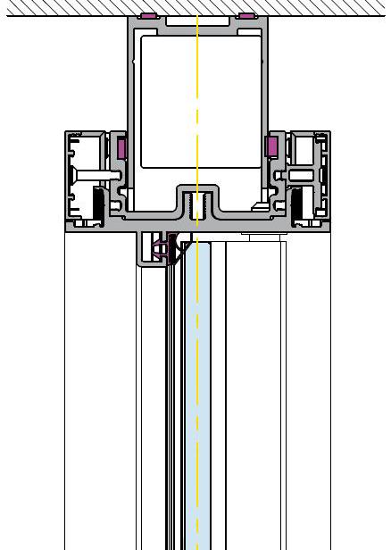 Doppelschiebetüre mit Überbau und durchgehender, verschließbarer Griffleiste bis 350 cm Raumhöhe
