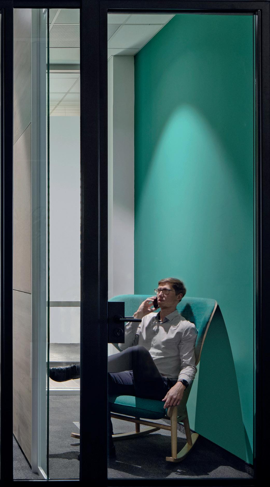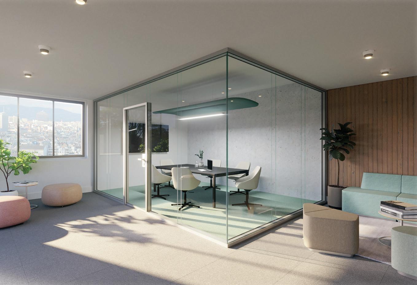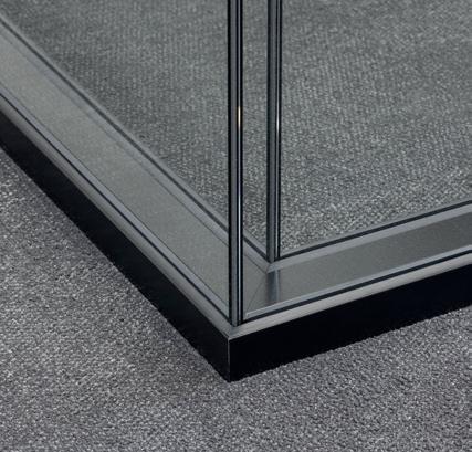 Je nach statischen und akustischen Erfordernissen kann das Wandsystem in einschaliger oder zweischaliger Bauweise mit unterschiedlichen Glasstärken ausgeführt werden. Eine offene Atmosphäre entsteht, in welcher vertrauliche Gespräche trotzdem unter vier Ohren bleiben.