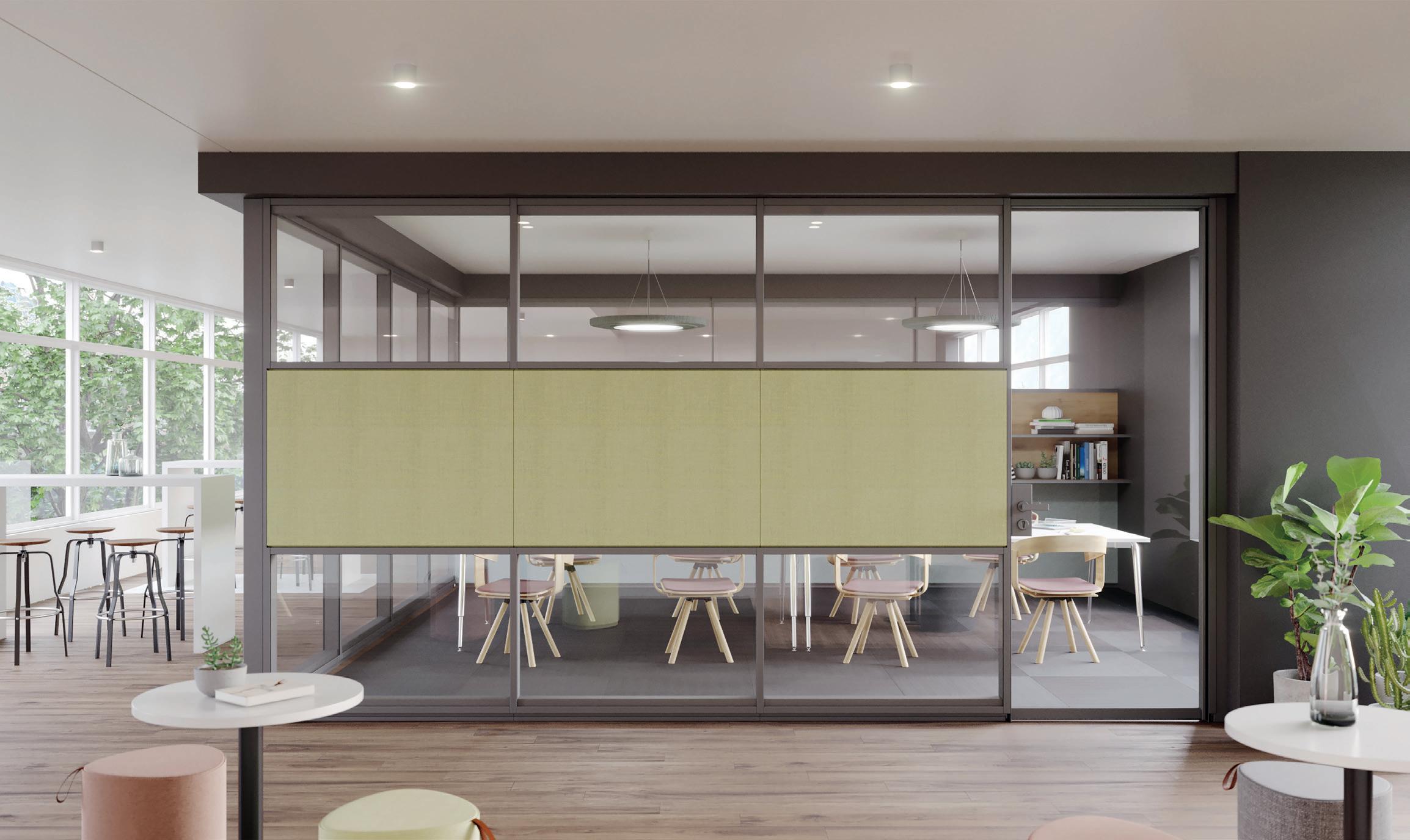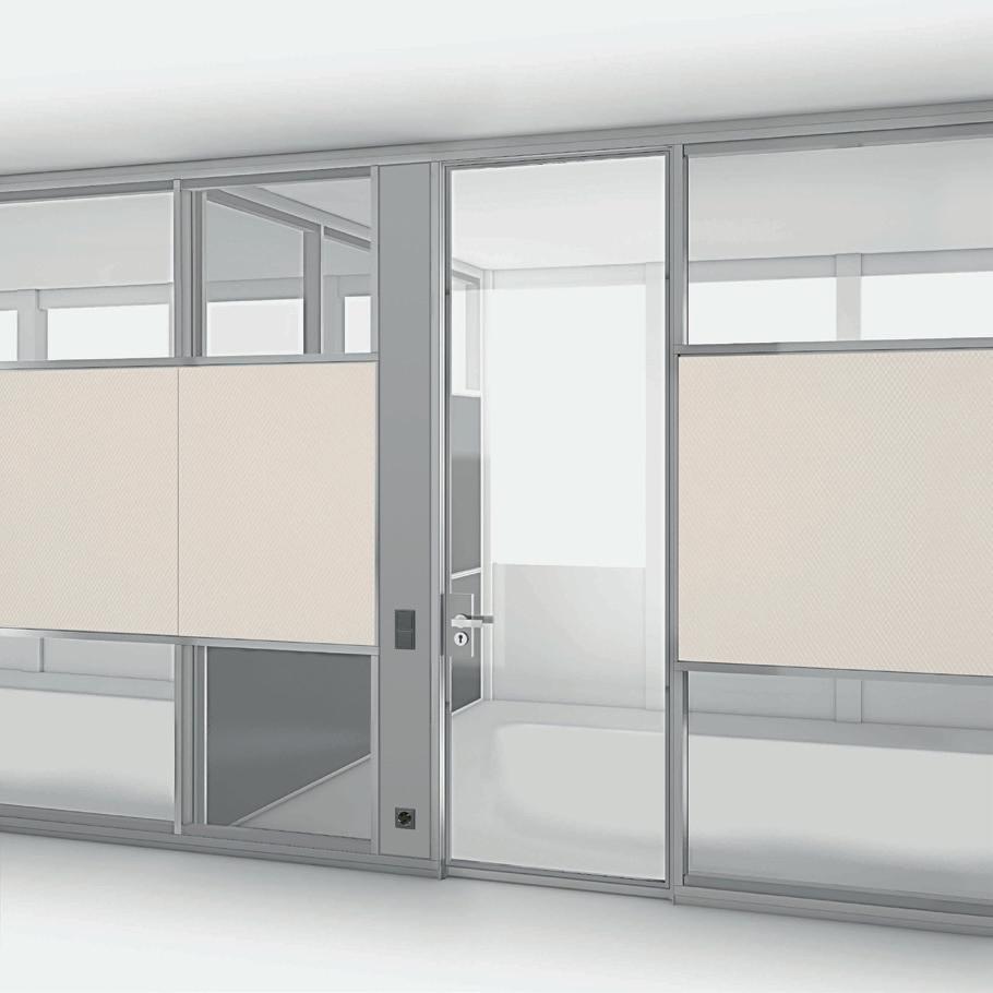 So gut gedämmt, dass Gespräche innerhalb der vier (Trenn-)Wände bleiben. Die Systemtrennwand kombiniert hochwirksam Schalldämmung und Schallabsorption in einem Wandelement. Mit drei verschiedenen akustischen Qualitätslevels zwischen 37 und 48 dB (Rw) findet sich für jede Raumsituation die passende Lösung. Die Wand kann auch nachträglich an neue AkustikAnforderungen angepasst werden.
