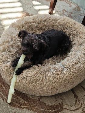 What I love most, though, isn’t really being in a car at all. It’s being in my bed at home, in the living room, chewing on my bone or going on walks with my best friend, Bruce. Or just sniffing everything in the