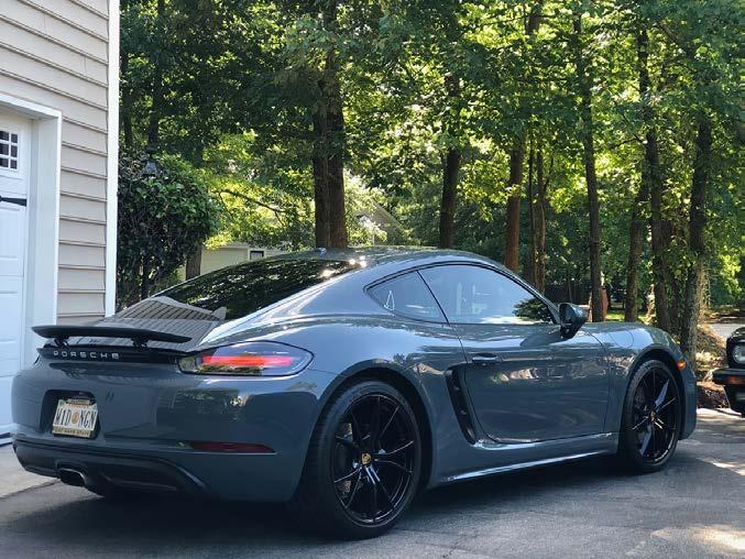 As previously mentioned, my wife had not been bitten by the car enthusiast bug until we purchased our first Porsche in April 2021. We found our 718 in Oklahoma City, Oklahoma (Oklahoma City Porsche) and had it shipped to Virginia. What made it stand out to us was the color, graphite blue. Actually, it intrigued my wife more so than me; I wasn’t in love with the color upon first sight. But once it showed up, I understood why she thought it was the best choice for us. Finding a six-speed manual was a must, and it made our search somewhat long and exhausting, and at times we almost gave up. One of the first modifications I made was to add an APR performance software tune which increased the horsepower by 70 hp with 93 octane fuel. The remapping was like night and day when it comes to performance; it really woke the car up and I haven’t had any issues whatsoever. The tune seemed to change the exhaust slightly and decreased turbo lag with additional power/performance around 5000 rpms or so. I have plans to install a valved Fabspeed exhaust (to be installed at the Fabspeed Headquarters in Pennsylvania) this year along with Bilstein adjustable coilovers. Although I have made some changes to my 718, the car is perfect from the factory.