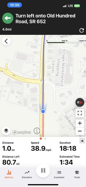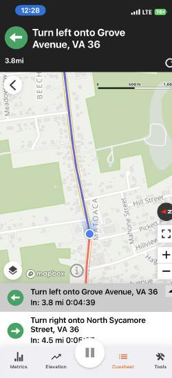 app signaled that the next turn was x miles ahead, then provided the .25-mile warning. These distances and tones are configurable in the app. Note that I have a 2014 Cayman with PCM3.1 and an added JoyeAuto CarPlay unit that allows me to stream from my phone and display Waze or Google maps on the head unit screen. This allowed Ride with GPS to announce over the car’s speakers. I assume it would announce over the phone’s speakers if you didn’t have CarPlay/Android Auto but further testing is needed.