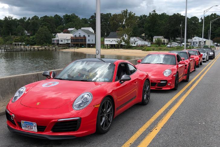 Conclusion. I hope this article will make you stop and reflect on how richly blessed you have been as well. I know that my family has been so blessed. Wonderful cars. Over the years we have made many good friends in our club. Some Porsche owners are impressed with the workmanship and the beauty of our cars. And while I like those aspects of our beloved cars, I really love driving them. Now about 400,000 smiles have passed. I suspect that starting in October 1971, I got spoiled with driving Porsches. That 1971 911 T was such a stark contrast to a 1969 Chevelle Sedan. So, I guess a closing picture of the Red Rocket leading a group of Porsches on a recent FSR fun run is appropriate. Drive Safe. And remember, “John Deere green probably won’t look good on your Porsche.”