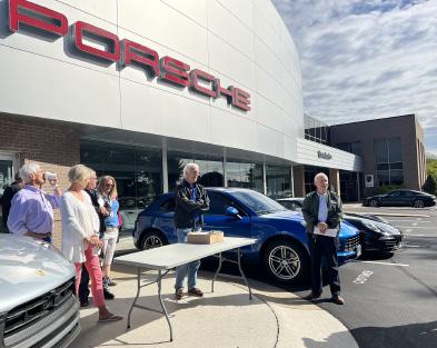 Checkered Flag about mid-day to swap cars. I was eager to get this new car and expected to be at the dealership only about an hour. It also was a Macan Launch Party, with many FSR friends and a food truck. As the day went on, I asked Barry several times when the new car would be ready. “We’re still finishing up the transfer.” Little did we know that the word had gone out: “Ed is getting a new car!” Finally, when they brought the new car out, we were greeted with lots of smiles, applause, and well wishes from many friends. Thanks Barry Cate and Joe Finkel!