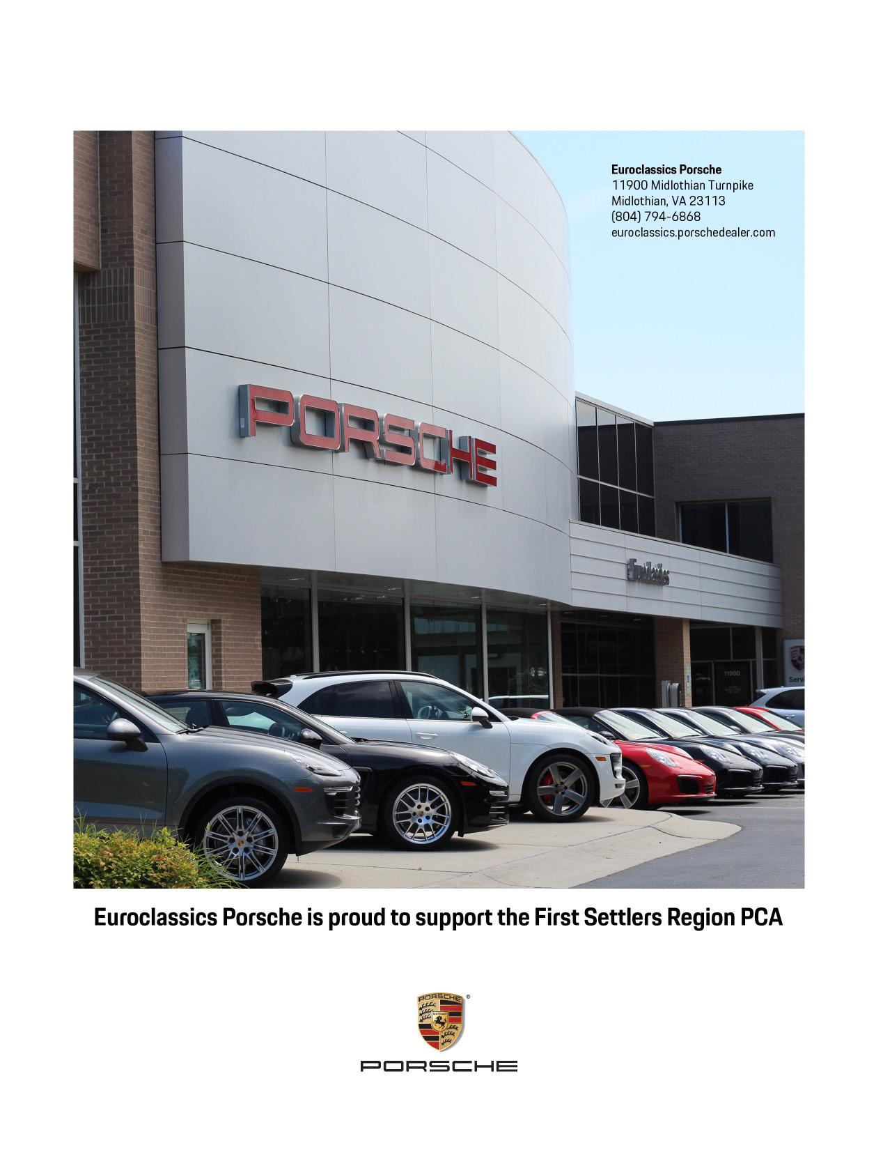 Advertising rates, schedules and commercial partner marketing support is available to all parties interested in engaging the members of the First Settlers Region of the Porsche Club of America. Please contact FSR Treasurer, Jerry Kent at treasurer@fsrpca.org or call 757.971.7849 for more information.