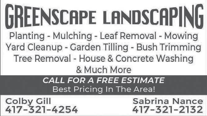 LANDSCAPE DESIGN and installation, property cleanups, leaf removal, stump grinding, shrub trimming and shaping, gutter cleaning, gravel driveways, lawn dethatching, overseeding and aerating. Redbud Farms & Nurseries. 620223-1811.