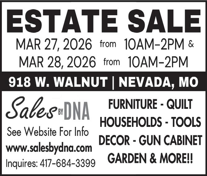 DEADLINES for the Nevada News/Countryside is 4 pm the Friday prior to publication unless otherwise published.