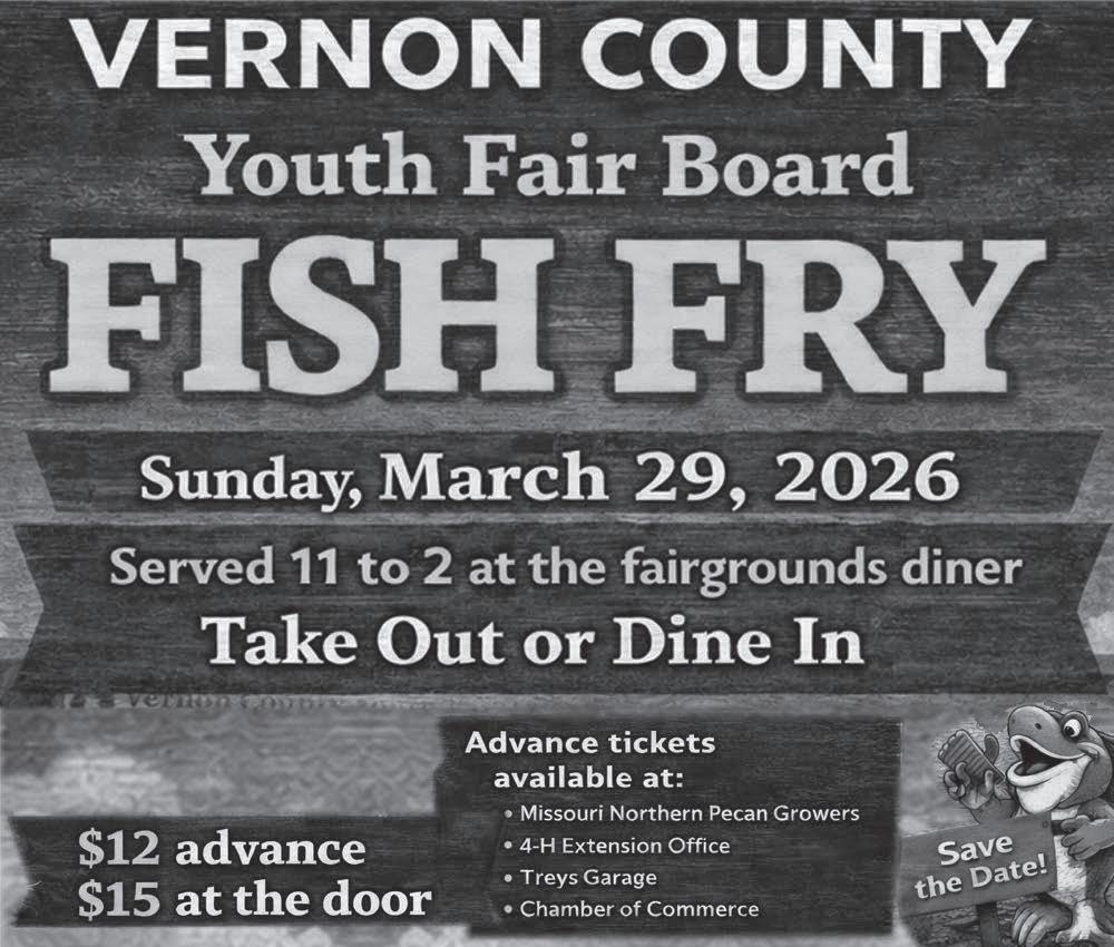 Sealed bids shall be delivered to the Vernon County Commission’s Office by 9:30 A.M. March 25, 2026 to be opened and read aloud at 10:00 A.M., March 25, 2026.