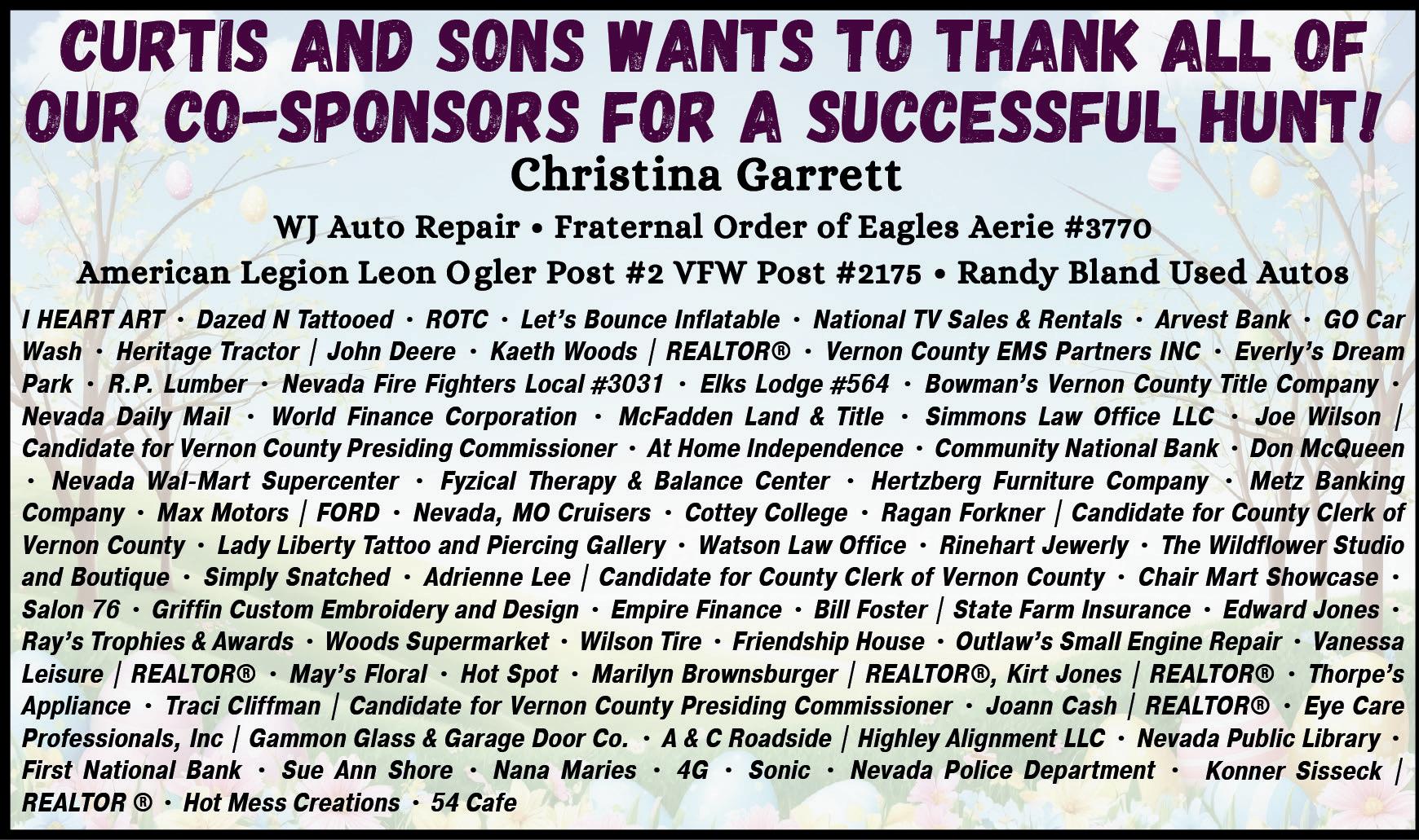 effort to meet advertisers’ special requests, but CANNOT GUARANTEE position on any specified pages or sections. The publisher is not responsible for copy omission, typographical errors or any unintentional errors that may occur in advertisement other than to correct it in the next issue after error is brought to publisher’s