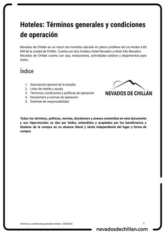 Términos y condiciones Hoteles - Nevados de Chillán