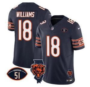 Chicago Bears #18 Caleb Williams Jersey Navy 2024 With 51 Patch Football
