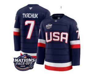 Men’s Brady Tkachuk Jersey #7 USA Navy 2025 4 Nations Face-Off Stitched