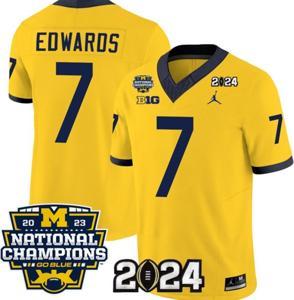 Men’s NCAA Wolverines 7 Donovan Edwards Yellow 2024 With 2023 National Champions