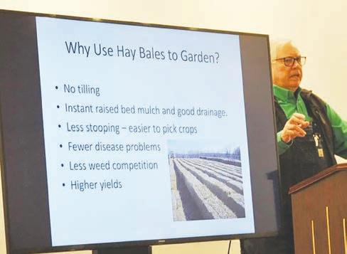 This past week he showed attendees at a Union County Heritage Museum program how to grow a variety of vegetables in hay bales.