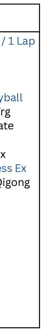 M - F: 8am • T, TH: 9am, T, W, Th: 1pm These time slots are for people who can enjoy aquatic exercise next to those who wish to lap swim. The center lane will be available for laps, the side lanes will be available for wall stretches.