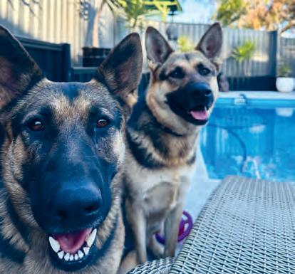 Gia is a black and tan German Shephard who just loves to make humans happy. Koa is beautiful and jumps around like a kangaroo. Together, they revel in rough-and-tumble play, inseparable companions bound by their mutual affection.
