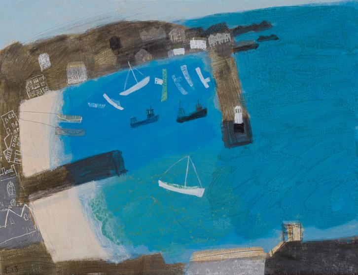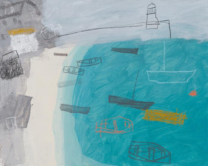 I have always been fascinated by the tide, and it has been foremost in much of my subject matter over the years. The tide represents such a steadying certainty, with its unwavering rise and fall. That resonates greatly with me. In this collection I have found comfort in returning to familiar territory, in particular the shapes and forms of our harbour town of St. Ives, which remains a constant source of inspiration.
