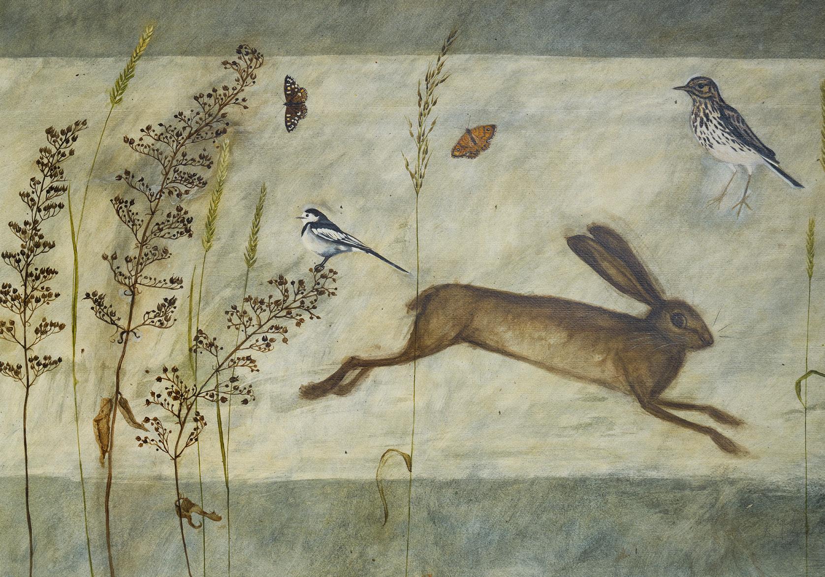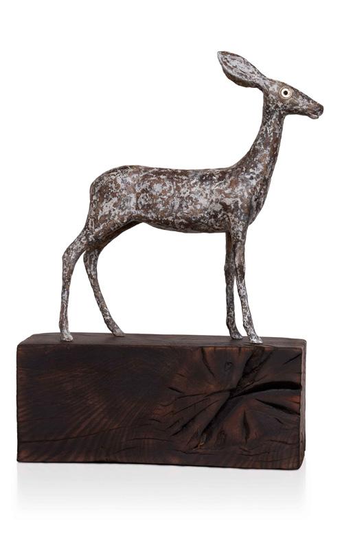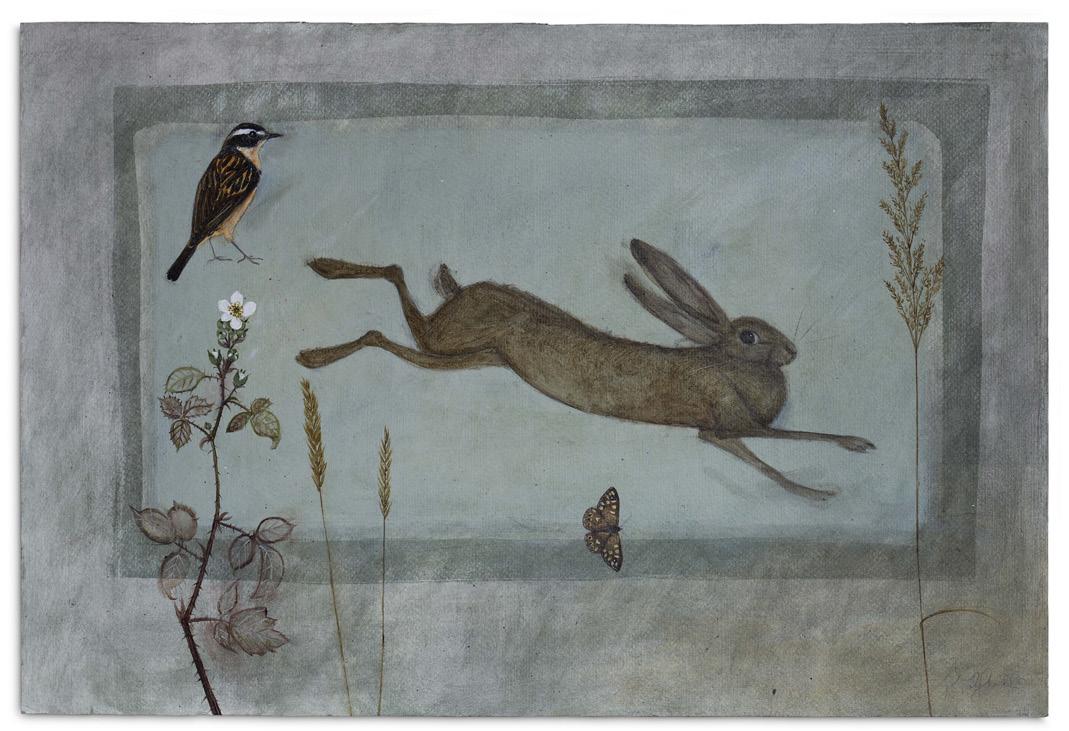 Rebecca Polyblank’s work is inspired by the ancient landscape of Bodmin Moor and the poetry of Charles Causley, whose words evoke the folklore and quiet magic of rural Cornwall. Her paintings and sculptures capture the wild grasslands and native creatures of the moor, rabbits, deer, owls and butterflies, all observed from life around her remote farmstead studio. Rebecca’s palette of soft blues, greys and golds traces the seasons, as bracken and moor grass fade from spring through to winter. Her sculptures of horses, hares and birds, finished in tones reminiscent of weathered stone and lichen, share the same stillness and reverence for place. Together, these works form a tender portrait of a landscape where nature, myth and memory remain deeply intertwined.