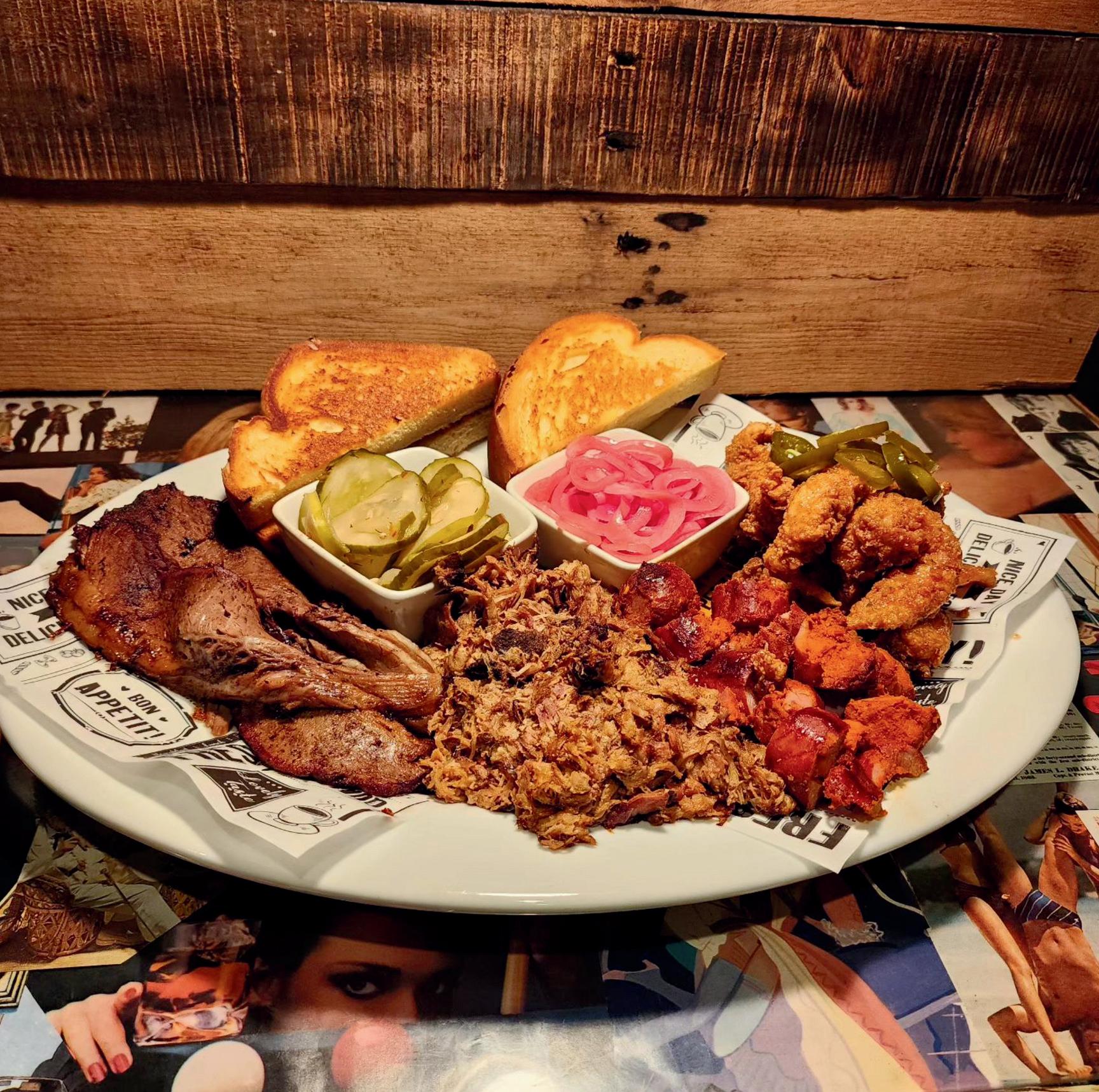At Six String, some of my favorite dishes include the BBQ Bao Buns, the Walkin’ Taco, the Street Corn Salad, as well as the Nashville Hot Chicken Sandwich. The BBQ Bao Buns are served with hoisin BBQ pork, house made pickles, carrots, cilantro, spicy mayo, and sesame seeds in a fluffy, steamed bun. The Walkin’ Taco is made with nacho cheese Dorito’s, taco seasoned ground beef, lettuce, five cheese sauce and Pico de Gallo, served in a Dorito’s bag. The Street Corn Salad is great for a lighter option, served with iceberg lettuce, roasted corn, blistered tomatoes, avocados, cotija cheese, tortilla strips, cilantro, and a chili lime crema dressing. And the Nashville Hot Chicken Sandwich is served with spiced buttermilk chicken, battered and fried golden, a house made Nashville hot sauce, pickles, mayo, and shredded lettuce on a grilled bulky roll.