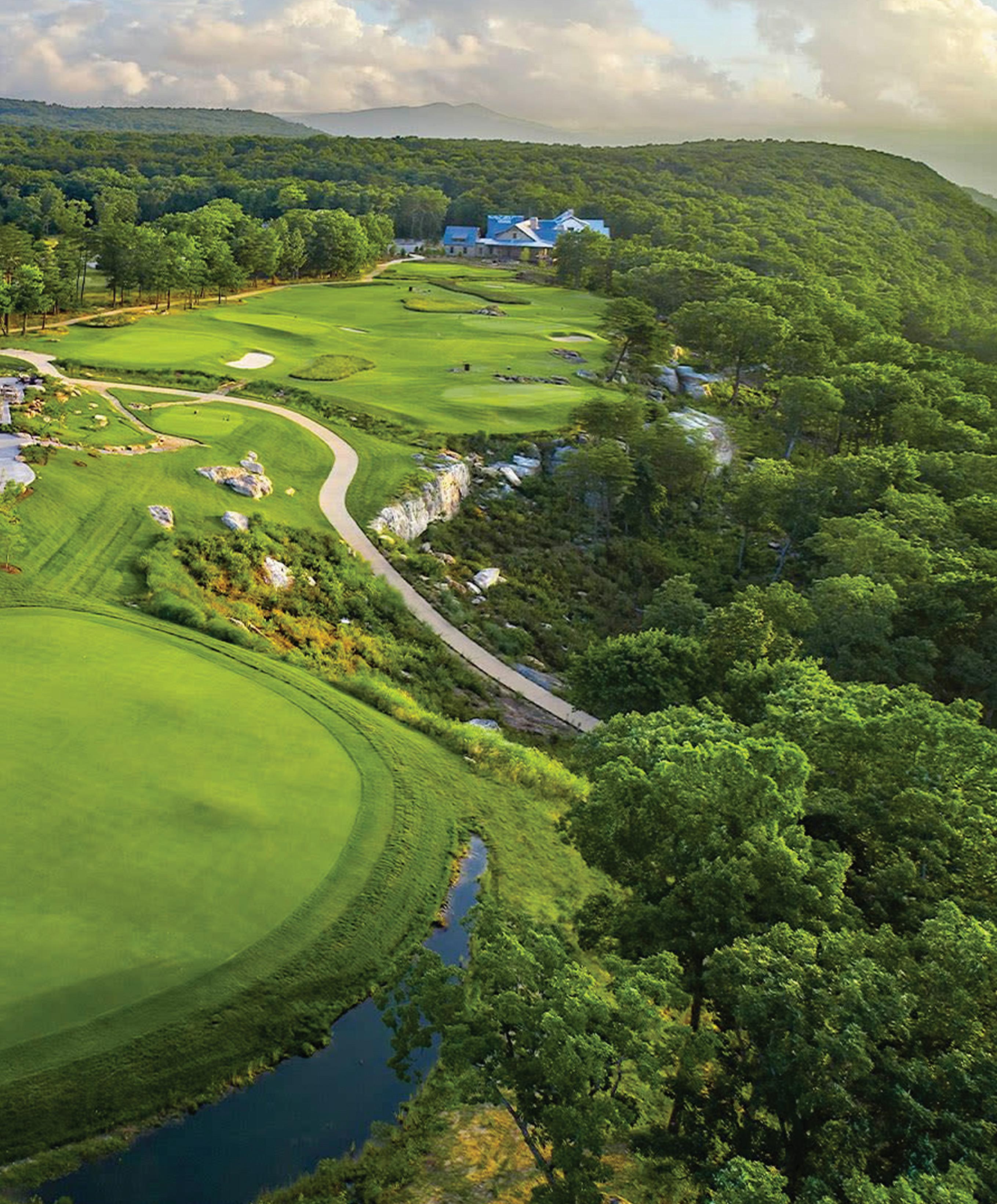 The Keep is for walking only, in preview play condition. While a cart barn is being built, pushing carts on the long layout is quite a workout. Caddies are wisely available. Five holes run along the ridge, with a hosted halfway house and a swilcan bridge on steroids on number 13. From the 16th you can see Pigeon Mountain and Chattanooga or review the catcher-mittshaped course. Make your final putt and carefully approach the precipice for a breathtaking finale, with butterflies flitting in your stomach.