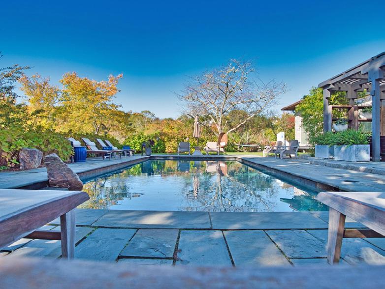 Frank Lloyd Wright inspired, this home seamlessly integrated indoor and outdoor living on a luxurious single level. Privately set on an acre lot overlooking Wild Pepper Farm's pond and hills, with in-ground pool surrounded by terraces granite walls, gardens illuminated Koi pond and putting green
