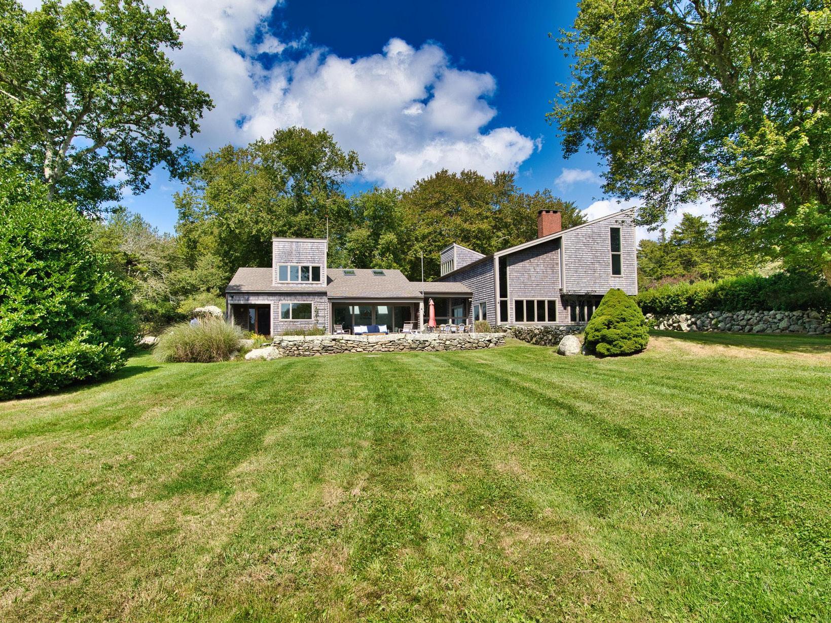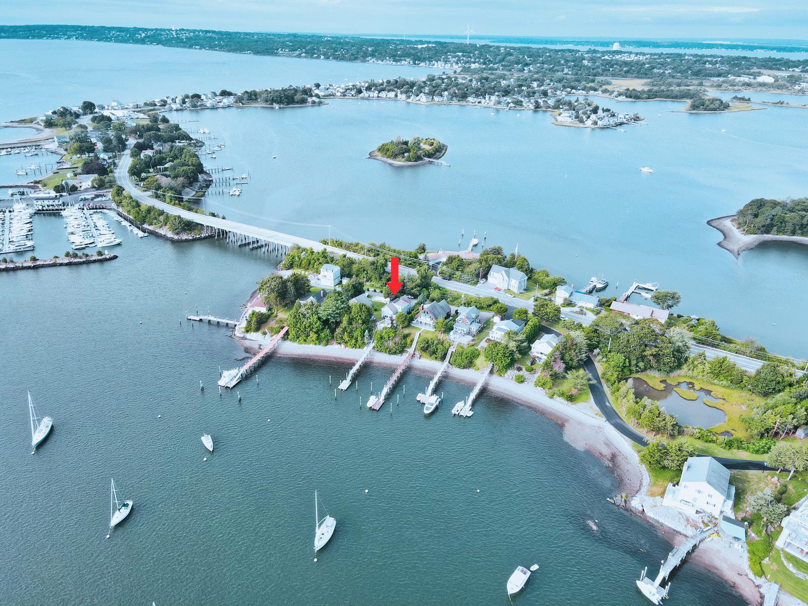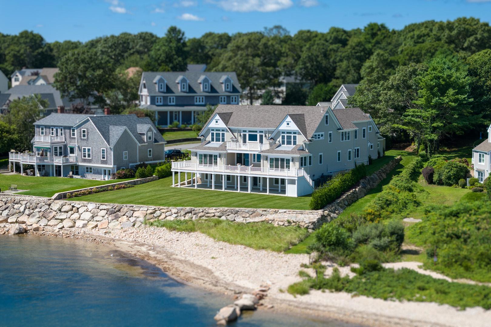 Outstanding five-bedroom waterfront residence and two-bedroom guest house in the private community of Oyster Harbors.