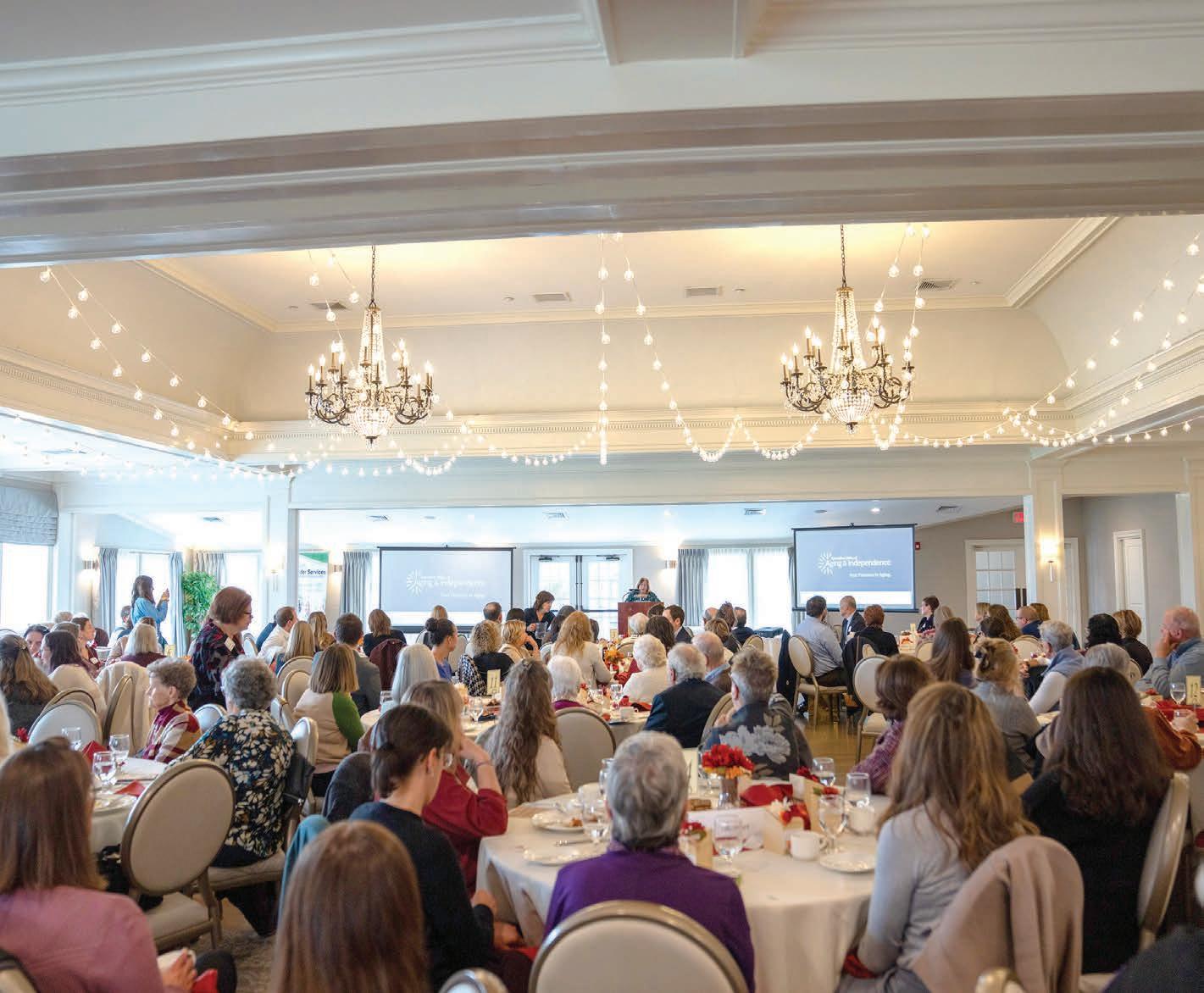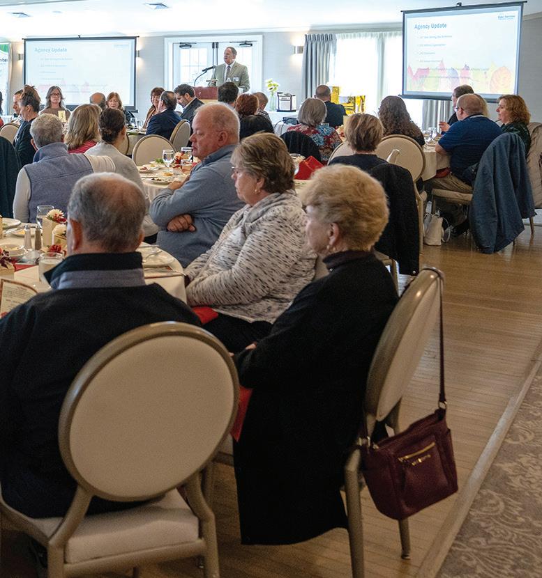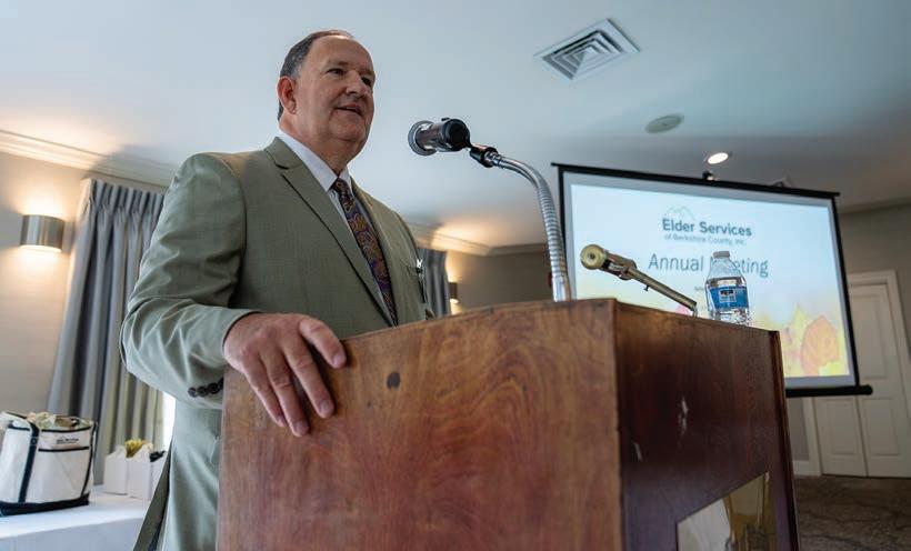 Clockwise, from top left: Outgoing board member Roberta Gale, outgoing Board President Je rey Menkes and Rep. Tricia Farley-Bouvier; Executive Director Christopher McLaughlin addressing meeting; Sen. Paul Mark; McLaughlin with Rep. Leigh Davis; McLaughlin with Executive O ce of Aging & Independence Secretary Robin Lipson; incoming Board President Barry Kriesberg; Lipson; McLaughlin; Elder Services’ board members (l-r) Rhona Hetsrony, Georgette Kinney, Bruce Bernstein, Kalee Carmel, Je Menkes, Teresa Caldwell, Kulli Bloom, Kelly Charon, AJ Cote and Barry Kriesberg, with McLaughlin behind and third from right.