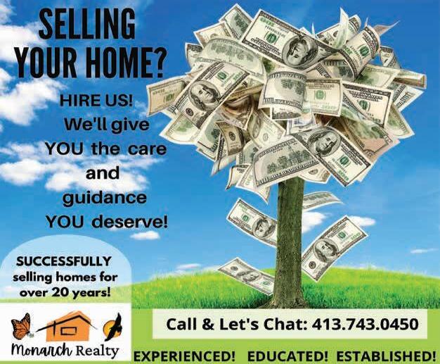 C all for Professional H ome Organizing and Cleaning Ser vices in Pit t s field O r Lenox When you schedule regular c ean ng ser v ces from Fresh Star t , your home can have that pol shed sparkle year-round A professional c ean ng ser v ce from Fresh Star t goes beyond the basics We l deep clean your wal s cab net s and closet s There won’t be any dir t in sight once we ve dusted swept and mopped Schedule a professional c eaning ser vice from Fresh Star t in Pit t sfie d or Lenox Massachuset t s now Your house c eaning ser vice must be scheduled e ther a week or t wo weeks n advance to ensure availabil t y $20 OFF first cleaning when signing up for reoccurring services. Voted Best of the Berkshires 5 years in a row M o n a r c h R e a l t y I n c o ff e r s e xc e p t i o n a l b u ye r a n d s e l l e r r e p r e s e n t a t o n i n B e r k s h i r e C o u n t y, M A & Ve r m o n t w w w m o n a r c h r e a l t y - m a c o m Experienced! Educated! Established! SCAN YOUR SMART PHONE & GO DIRECTLY TO OUR WEBS TE TO BROWSE ALL LIST NGS AVA L ABLE N BERKSH RE COUNT Y MA & VERMONT 97 Summer S Adams MA 413-743-0450 REA CHI KIM COONES DOREEN COONES COLLEEN ZAJAC PAUL DUMA DENNIS ARCHANGE O MITCH ZAJAC SUE COLVIN TODD CAIRNS LAURIE SOBON Proud ly Ser v ing Berk shire Count y M A & Sou hern V T for O ver 20 Years